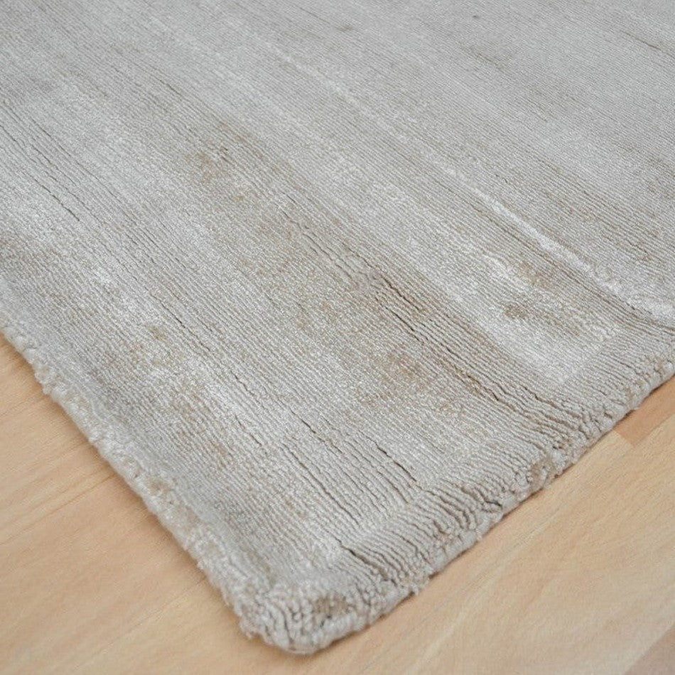 Presented in a refined Champagne Beige, this rug offers a soft neutral warmth that complements both modern and classic interiors. Its low, flatweave pile provides a clean, contemporary profile, while the hand-finished artisanal construction enhances its luxury appeal. The lustrous viscose fibres create a silky texture underfoot, while the natural sheen transforms depending on lighting and pile direction, giving it a dynamic, ever-changing look.