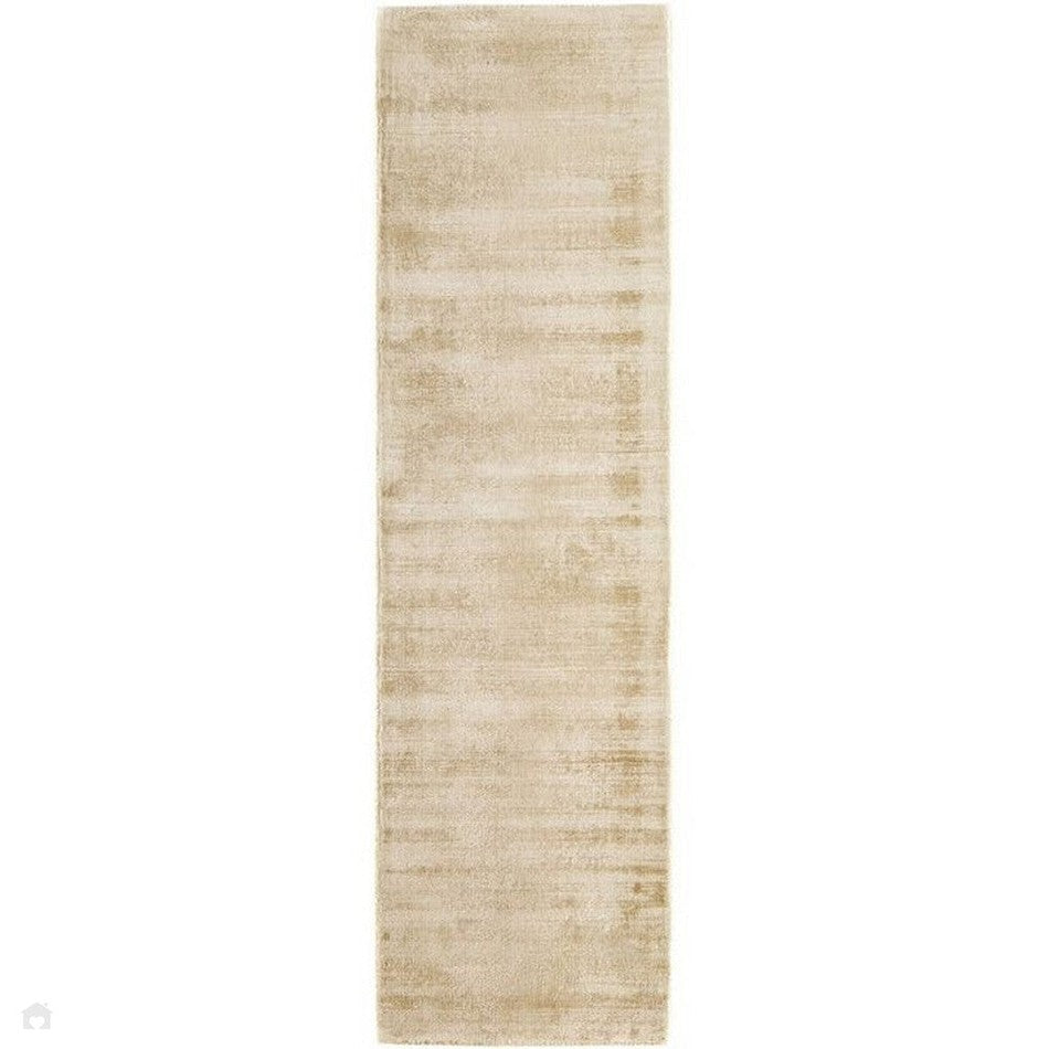 The Blade Champagne Beige Runner combines Champagne Beige, Warm Sand, Pale Cream, Golden Taupe, and Soft Mushroom Grey to create a luxuriously layered neutral palette. The tip-sheared, hand-woven viscose finish produces a shimmering distressed effect, shifting between lighter and darker tones depending on light and pile direction. With its 7mm low flatweave profile, silky-soft feel, and versatile colouring, this rug is perfect for adding refined elegance to living rooms, dining areas, or bedrooms in both modern and classic settings.
