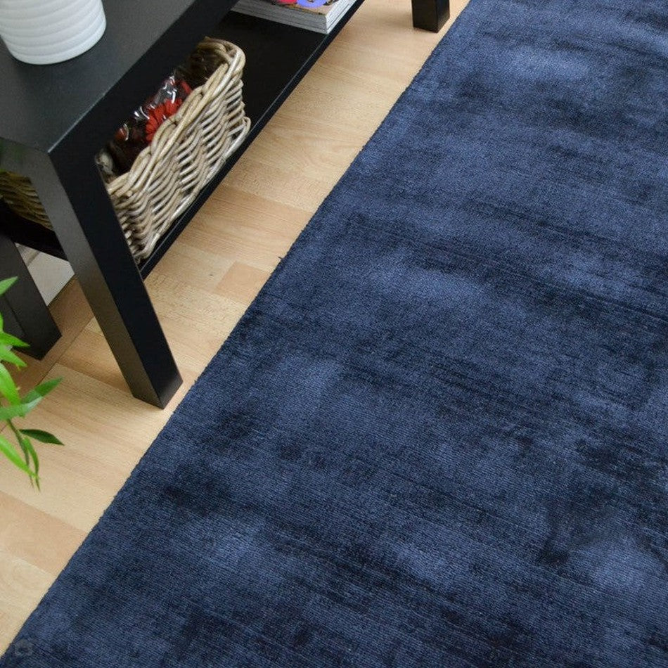 The Blade Navy Runner layers Navy Blue, Midnight Blue, Royal Blue, Slate Grey-Blue, Steel Blue Sheen, and Charcoal into a striking tonal palette that changes with light and perspective. With its 100% viscose hand-woven construction, tip-sheared finish, and 7mm flatweave pile, this rug delivers elegance and sophistication while providing a silky, luxurious feel underfoot. Perfect for living rooms, dining rooms, or bedrooms, it serves as a dramatic statement piece while remaining refined and versatile.