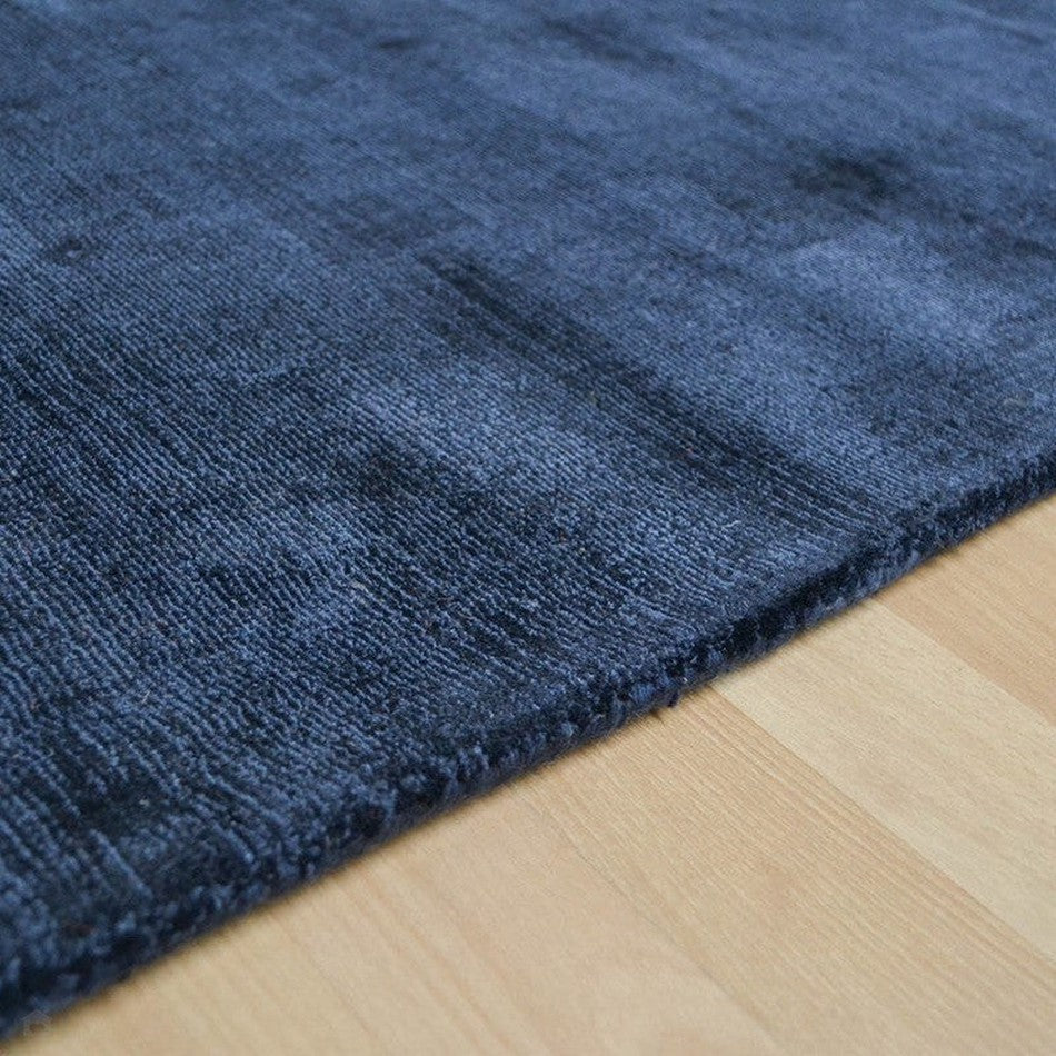 The Blade Navy Runner brings bold sophistication and a luxurious sheen to your interior. Hand-woven from 100% viscose, it features a tip-sheared finish that delivers a subtly distressed, shimmering surface. This reflective quality catches the light beautifully, causing tonal shifts that give the rug depth and movement.