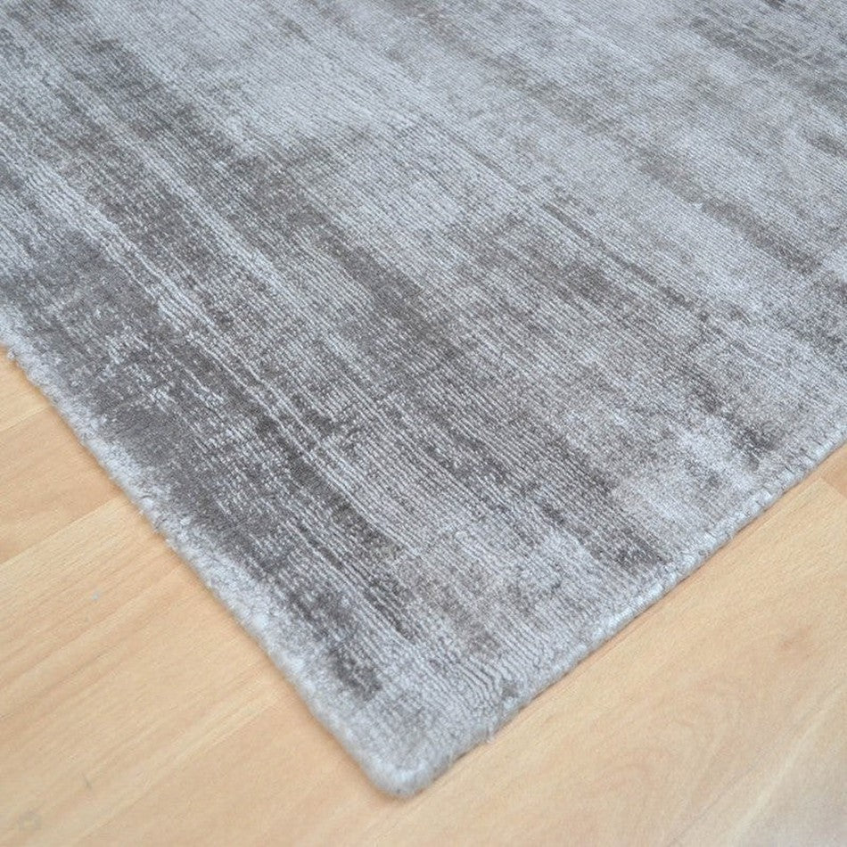 The Blade Silver Runner is a luxurious modern piece designed to bring understated sophistication and light-enhancing qualities into your home. Hand-woven from 100% viscose, it features a tip-sheared finish that gives the surface a distressed, shimmering appearance. This reflective quality catches the light beautifully, shifting in tone depending on angle and illumination.