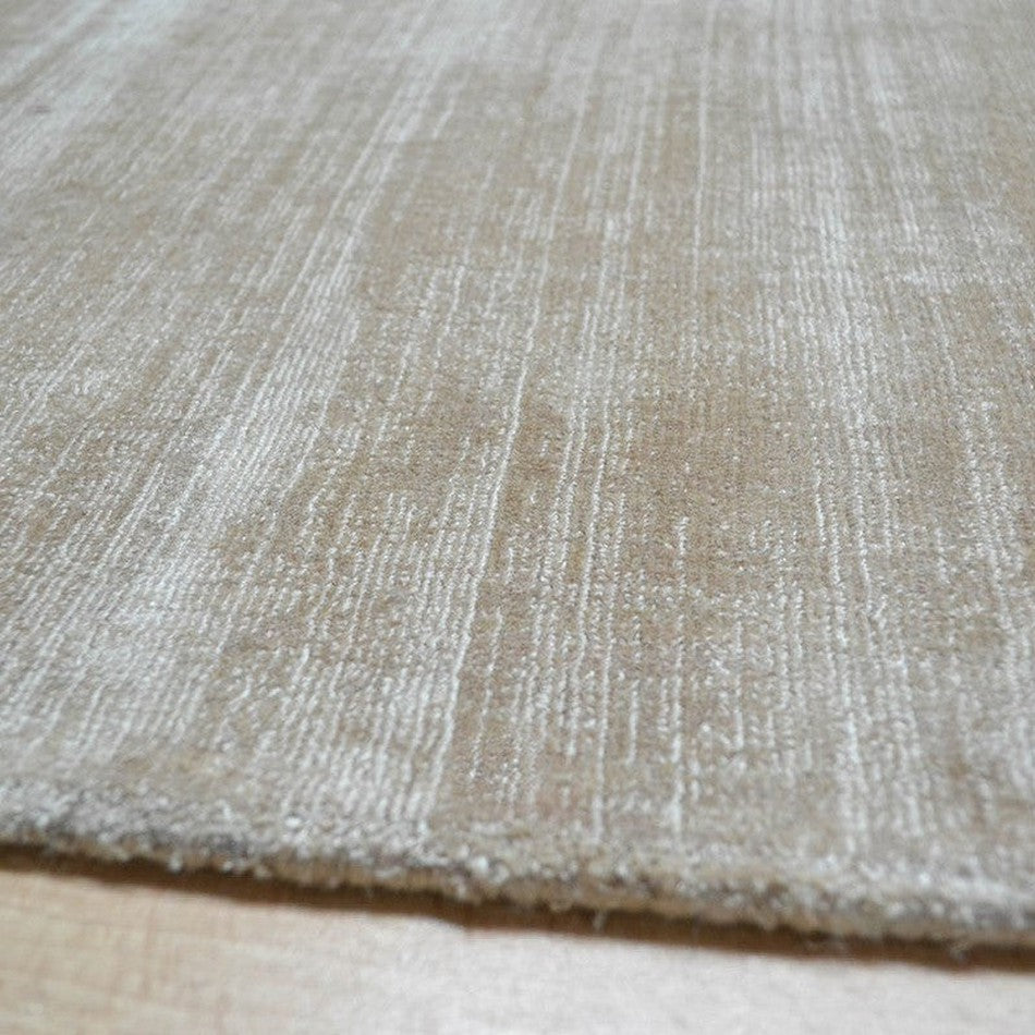 Blade Modern Plain Distressed Tonal Metallic Shimmer Hand-Woven Soft Textured Tip Sheared Loop Pile Silky Viscose Flatweave Soft Warm Golden Beige Rug