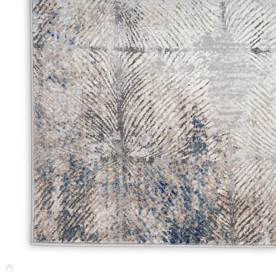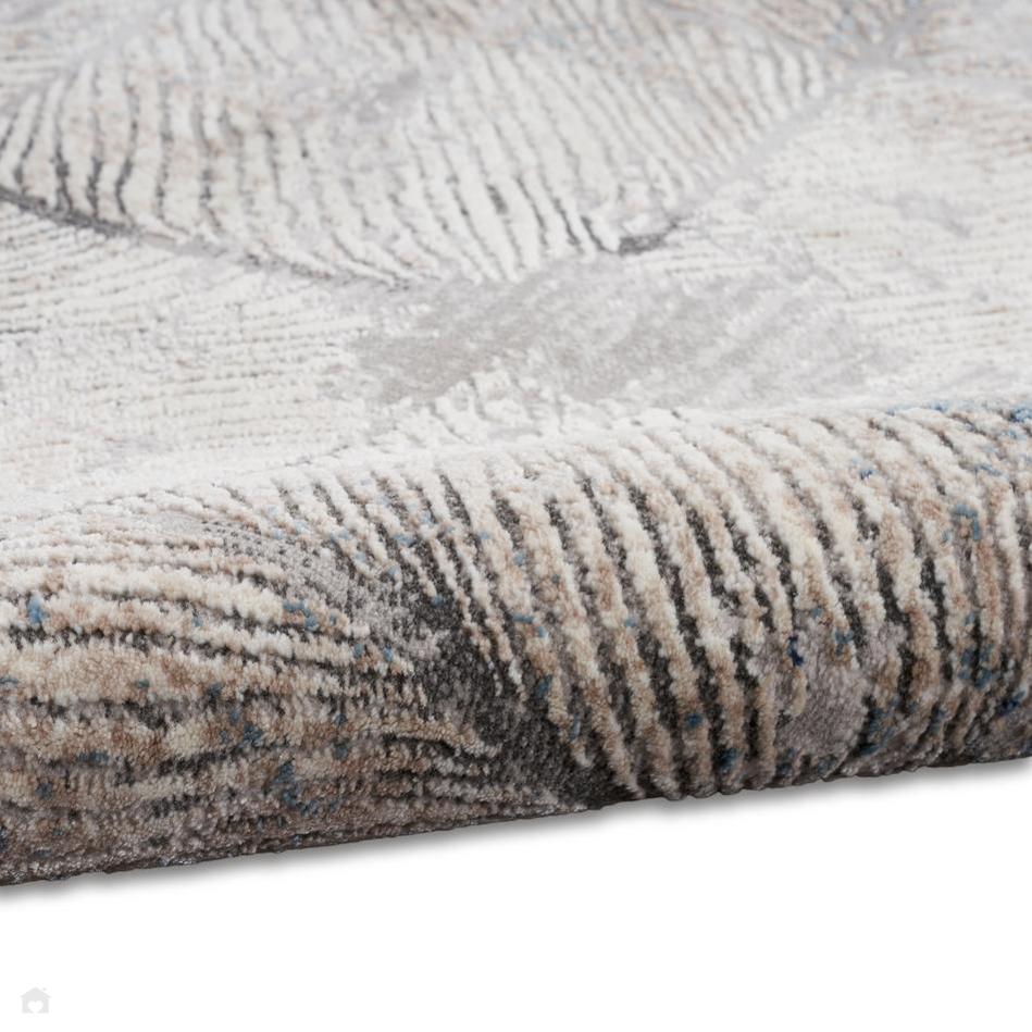 The Calvin Klein Infinity CK022 IFN02 Warm Beige/Ivory/Grey/Steel Blue/Dusty Taupe Runner showcases a linear abstract composition that evokes the natural striations of stone and the soft fading of light across textured surfaces. The interplay of Warm Beige, Ivory, Cool Grey, Steel Blue, and Dusty Taupe, lifted by Frosted White accents, creates a calm and balanced aesthetic ideal for neutral or softly toned spaces.