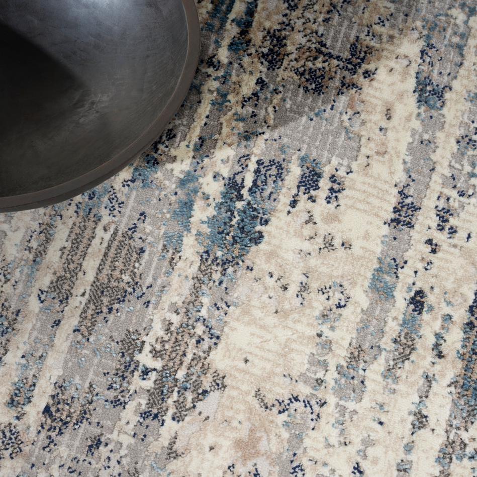 The Calvin Klein Infinity CK022 IFN03 Stone Grey/Ivory/Beige/Taupe/Charcoal Grey/Midnight Blue/Cream Runner presents a distressed geometric grid design defined by a harmonious blend of Stone Grey, Ivory, Beige, Taupe, Charcoal Grey, Midnight Blue, and Soft Cream. The pattern’s crosshatched structure and tonal fading give the rug an artfully weathered yet modern appeal, enhanced by its light hi-low texture and subtle reflective sheen.
