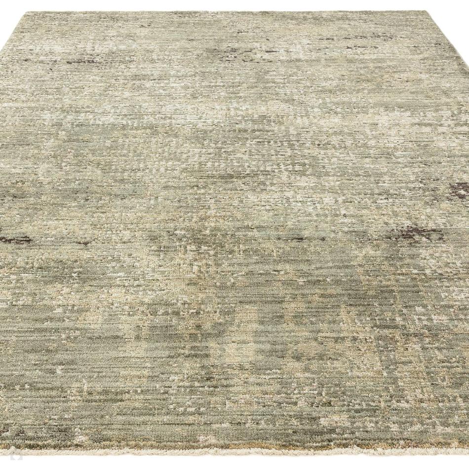 Power-loomed in Turkey from 100% space-dyed polyester, the Heriz Patina Green Rug presents a beautifully muted abstract surface with a softly distressed appearance. Its high-low pile texture adds depth and tactile interest, while the lustrous sheen gives a luxurious finish that subtly shifts in tone as the light changes. The low 6mm pile ensures practicality and durability, offering a contemporary expression of timeless elegance.
