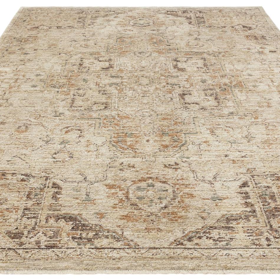 The Heriz Serapi Copper Rug beautifully bridges traditional Persian influence and modern sophistication, featuring a softly faded medallion and border design enriched by its space-dyed yarns and lustrous sheen. The interplay of Copper, Beige, and Sage Green tones delivers warmth and subtle vibrancy, while the 6mm high-low pile adds tactile variation and visual texture. Durable and easy to care for, this rug is an ideal centrepiece for living rooms, dining spaces, and elegant neutral interiors, offering timeless design with a gently modern twist.