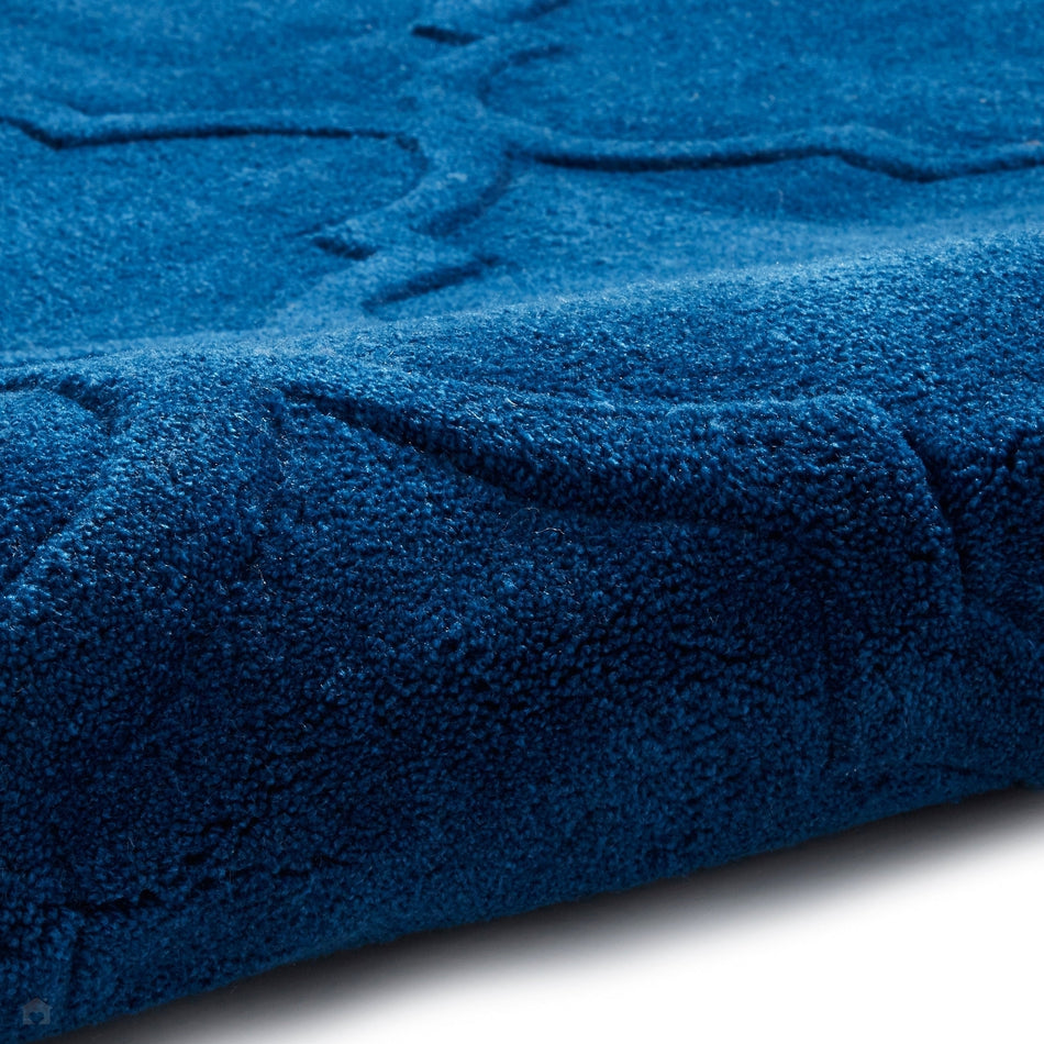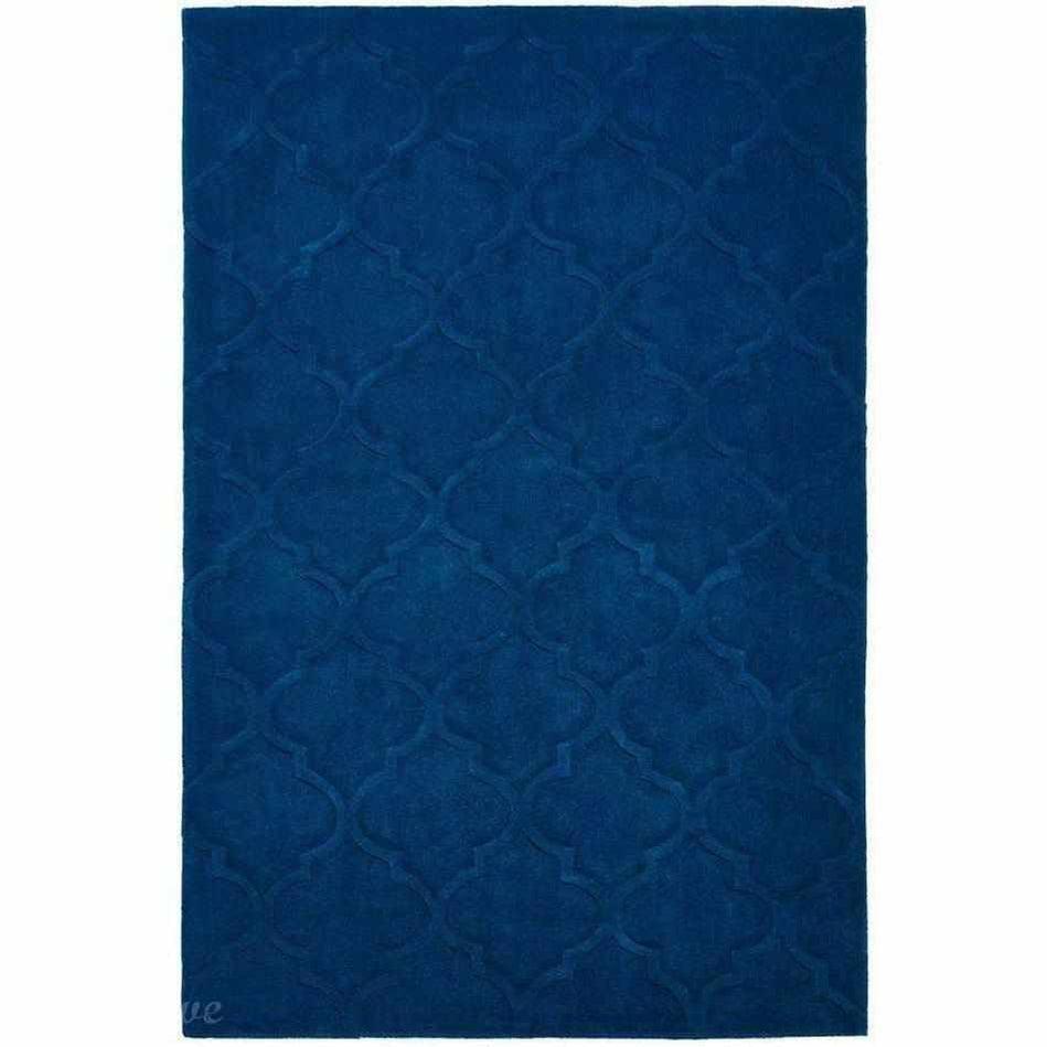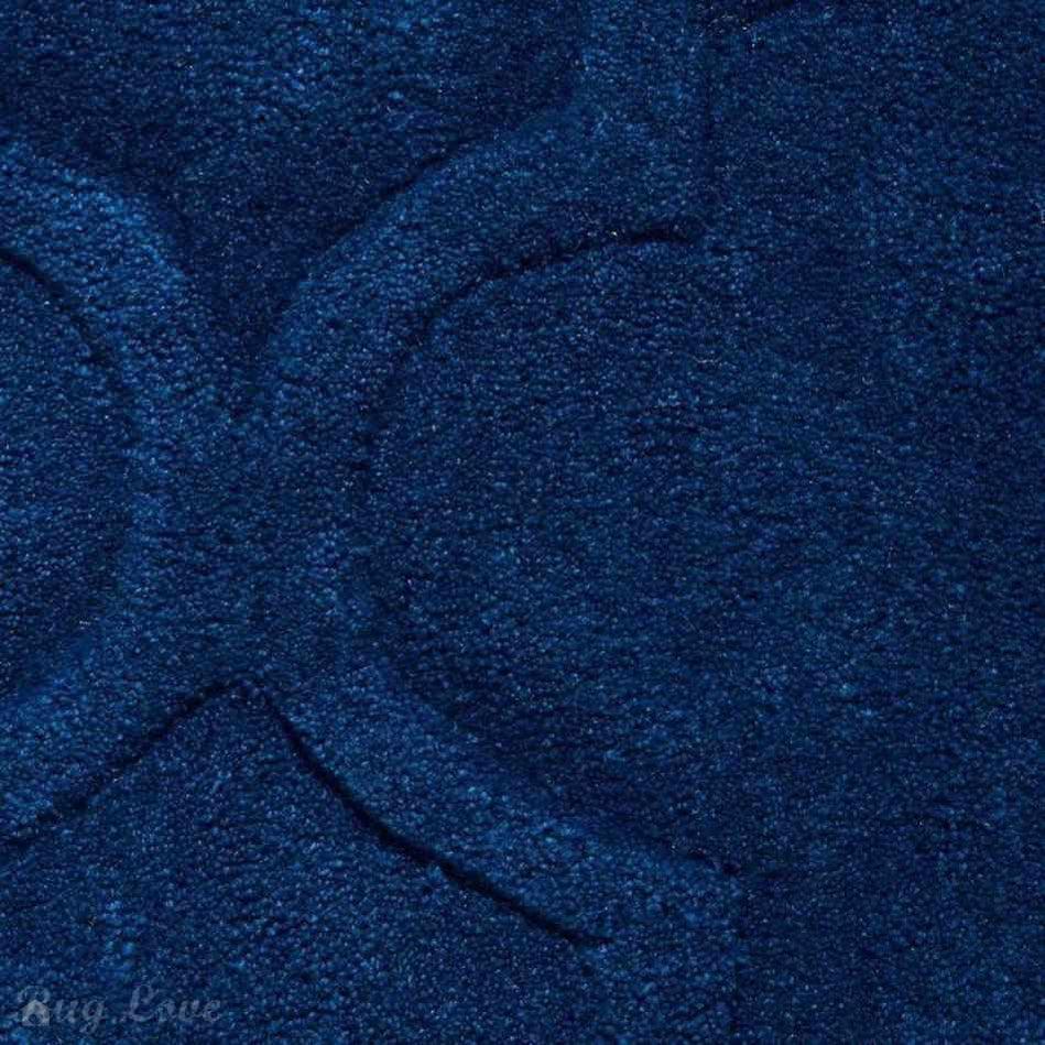 This rug features a deep and luxurious navy blue base, enriched with a raised geometric pattern that adds texture and depth. The interplay of subtle blue tones creates a sophisticated, modern aesthetic while maintaining a timeless appeal. The tonal variations ensure the rug complements both contemporary and traditional interiors, offering an elegant yet bold statement piece.