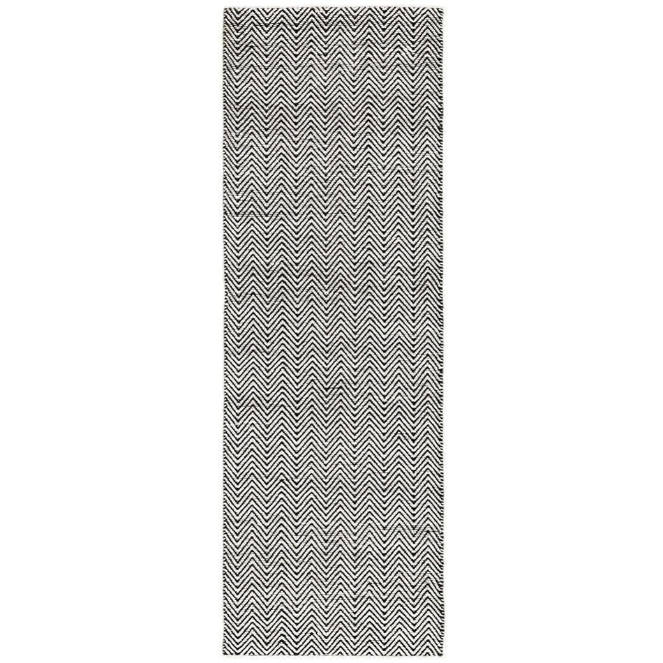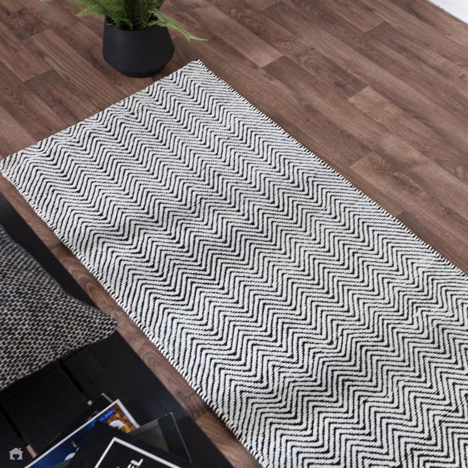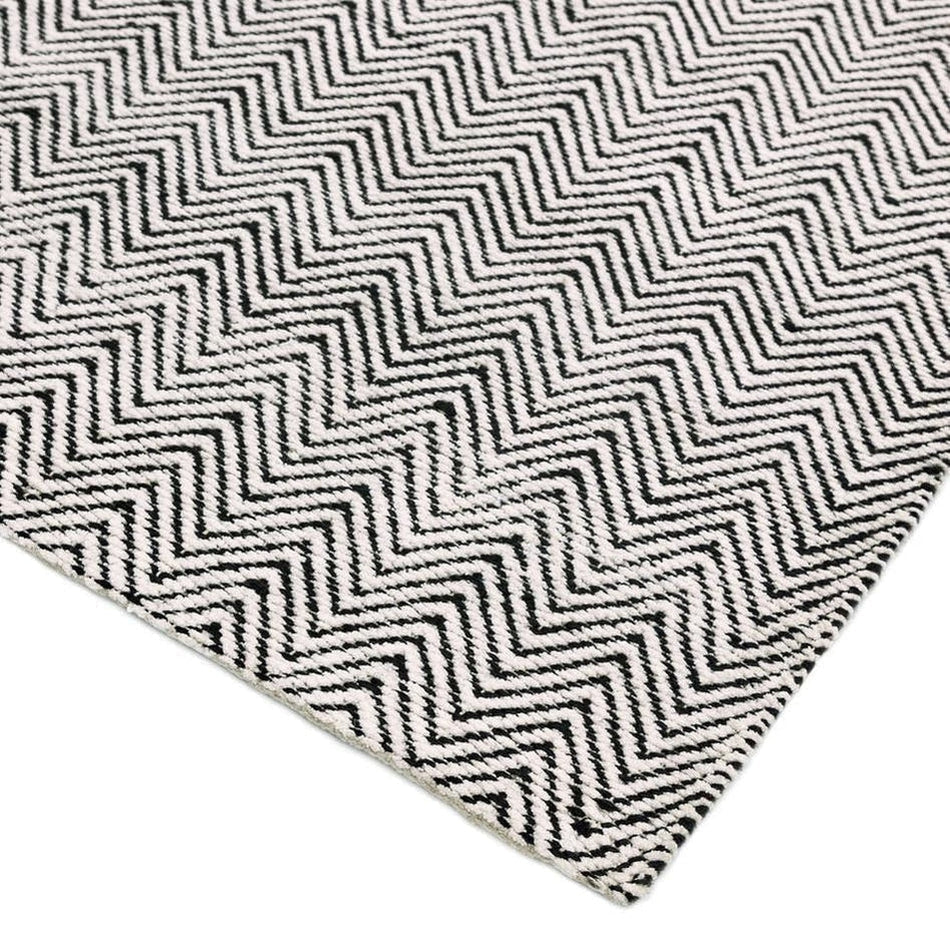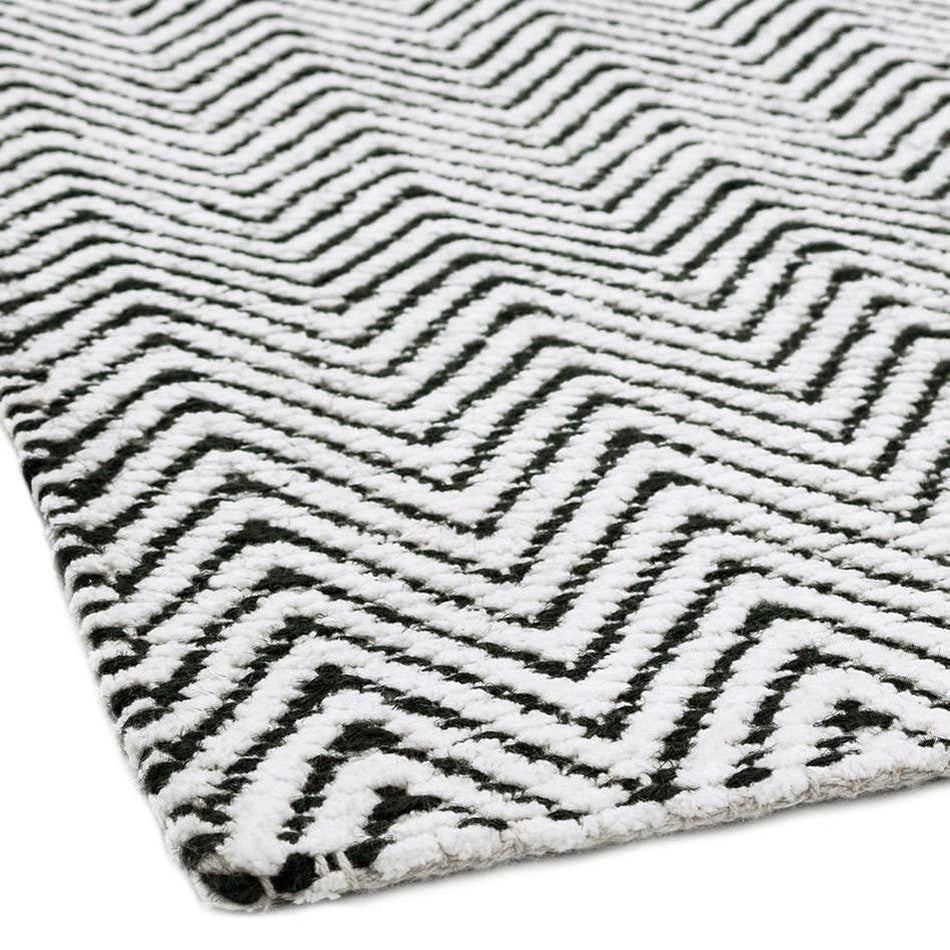 The Ives Modern Chevron White/Black Rug delivers a bold yet timeless statement through its striking monochrome palette and distinctive geometric pattern. Hand-woven in India from a durable blend of 60% cotton chenille and 40% jute, this flatweave rug combines texture, resilience, and comfort. Its chevron zigzag design creates visual movement across the surface, while the contrasting tones of black and white bring a crisp, modern aesthetic that complements a variety of interior styles — from Scandinavian minimalism to urban contemporary living.