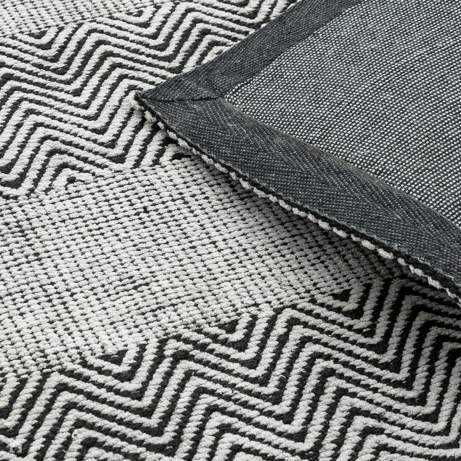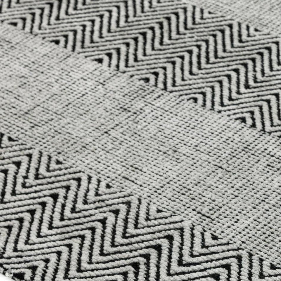 The Ives Modern Chevron Stripe Grey/Charcoal Rug presents a refined blend of geometric design and natural texture, offering a stylish yet versatile foundation for contemporary interiors. Hand-woven in India from a durable mix of 60% cotton chenille and 40% jute, this flatweave rug features alternating chevron and linear stripe bands that create visual rhythm and soft tonal contrast. The smooth cotton chenille fibres provide a comfortable underfoot feel, while the jute adds strength and a subtle organic texture — making it both decorative and practical for everyday living spaces.