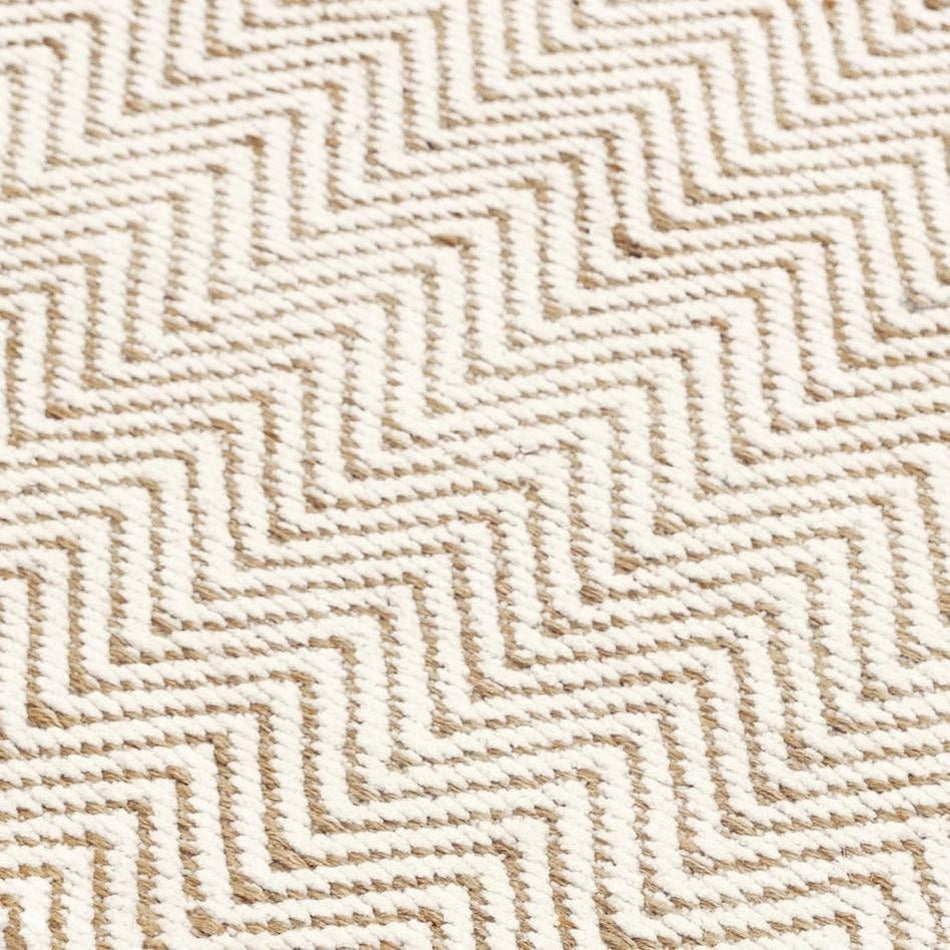 The Ives Modern Chevron Natural Runner showcases a beautifully woven chevron zigzag pattern that brings understated texture and modern warmth to any interior. Expertly hand-woven in India from a durable blend of 60% cotton chenille and 40% jute, this flatweave rug combines a soft-touch finish with the natural resilience of jute fibres. Its low-profile construction makes it ideal for busy areas such as living rooms, dining spaces, and hallways, offering both comfort and practicality.