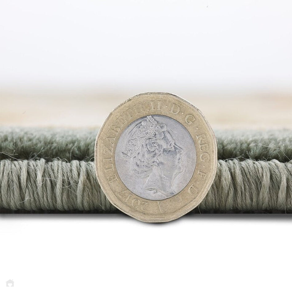 This rug may appear more Soft aqua blue in brighter daylight and more duck-egg green in evening or indoor lighting.