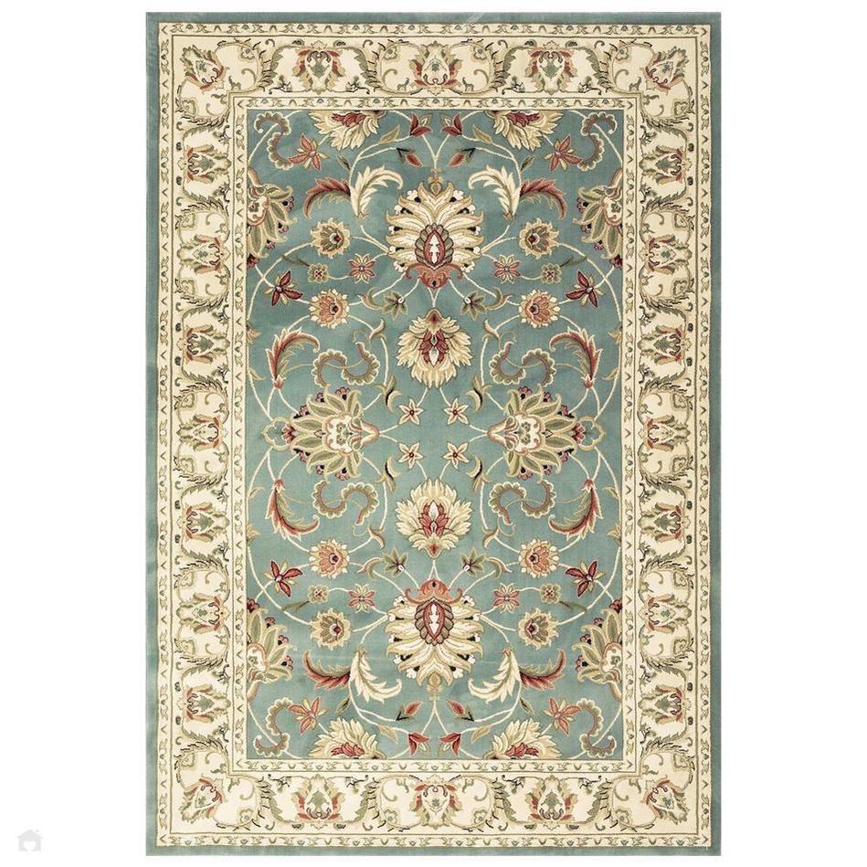 The Kendra 45L Round Rug is a traditional Persian-inspired design featuring a Soft Aqua Blue / Duck Egg Green backdrop with Ivory, Beige, Taupe, Gold, Rust Red, Sage Green, and Dark Brown accents. The interplay of cool aqua tones with warmer beige and gold creates a refined yet inviting look. Customer photos show that the rug can lean more aqua-blue under daylight and more duck-egg green under indoor lighting, so tonal variation should be expected. Its short, low-profile pile makes it practical and durable, while the classic floral-and-vine motif brings timeless elegance to living rooms, dining spaces, and bedrooms.