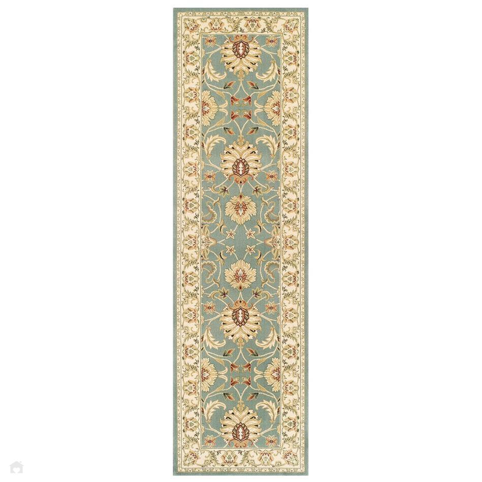 Muted Teal-Green Undertone – Visible in certain lighting and angles, giving the rug a subtle green cast compared to the bluer aqua seen in studio shots.