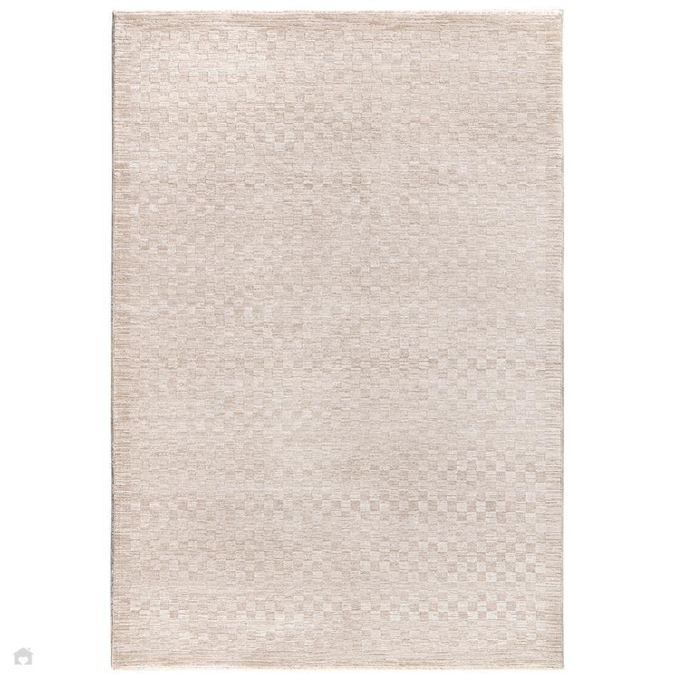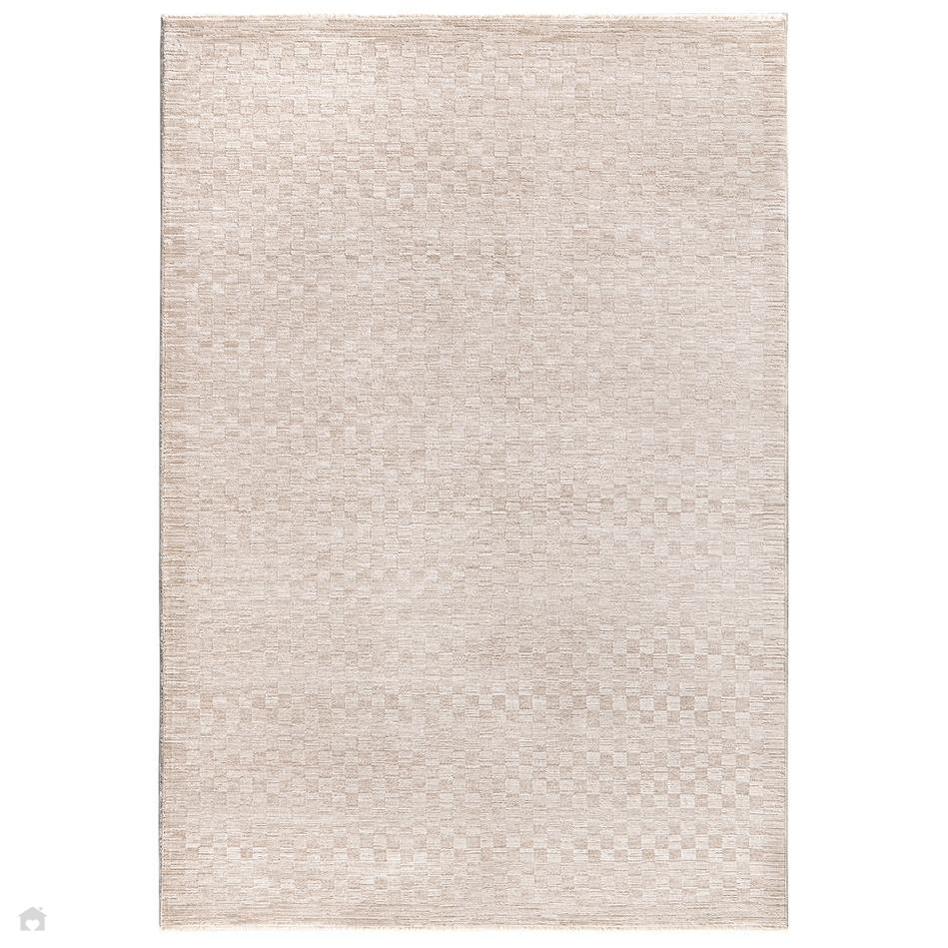 The Laurent LA01 Warm Beige & Golden Sand Rug evokes understated warmth and serenity through its checker-inspired geometric pattern and refined tonal layering. The softly space-dyed yarns introduce subtle shifts in tone, lending a sense of movement and light variation across the surface while maintaining a calm, neutral appearance.