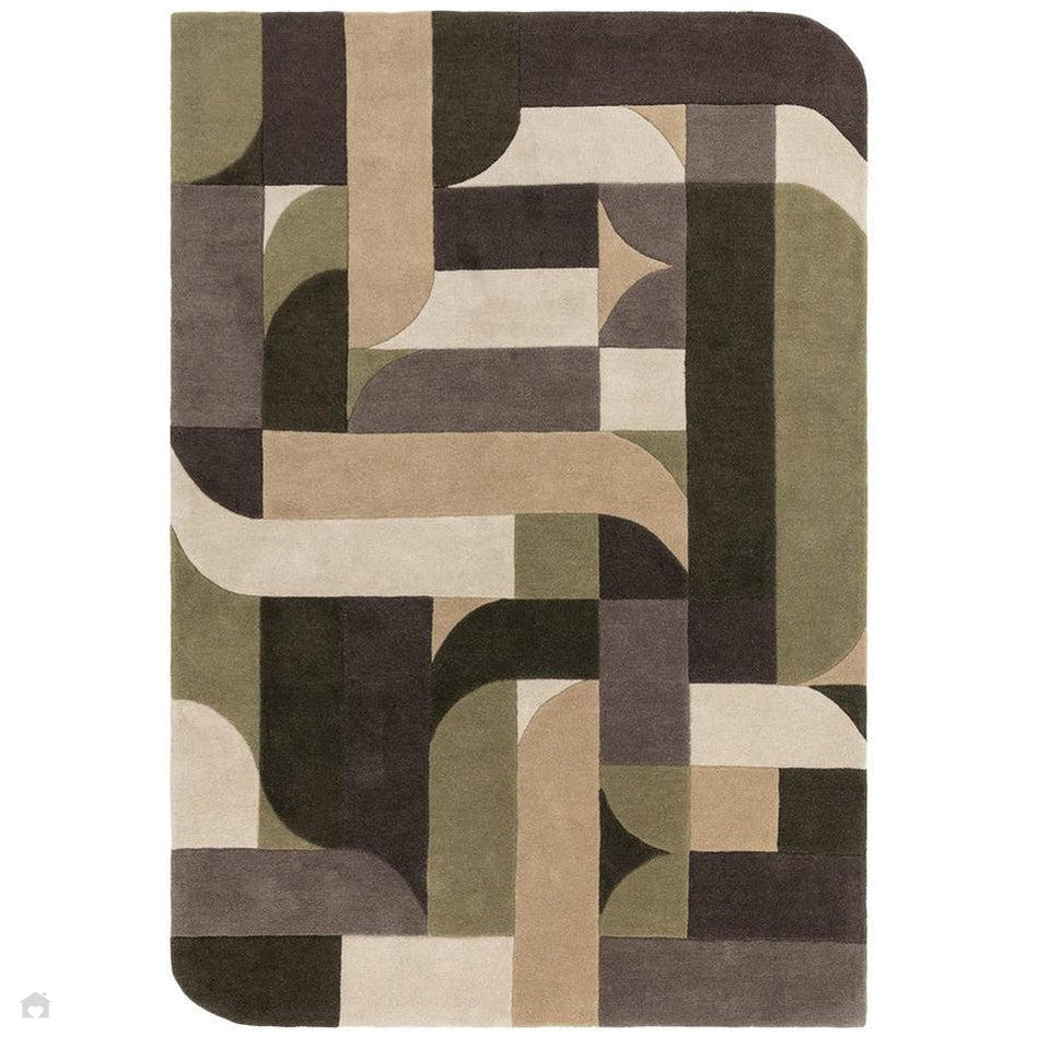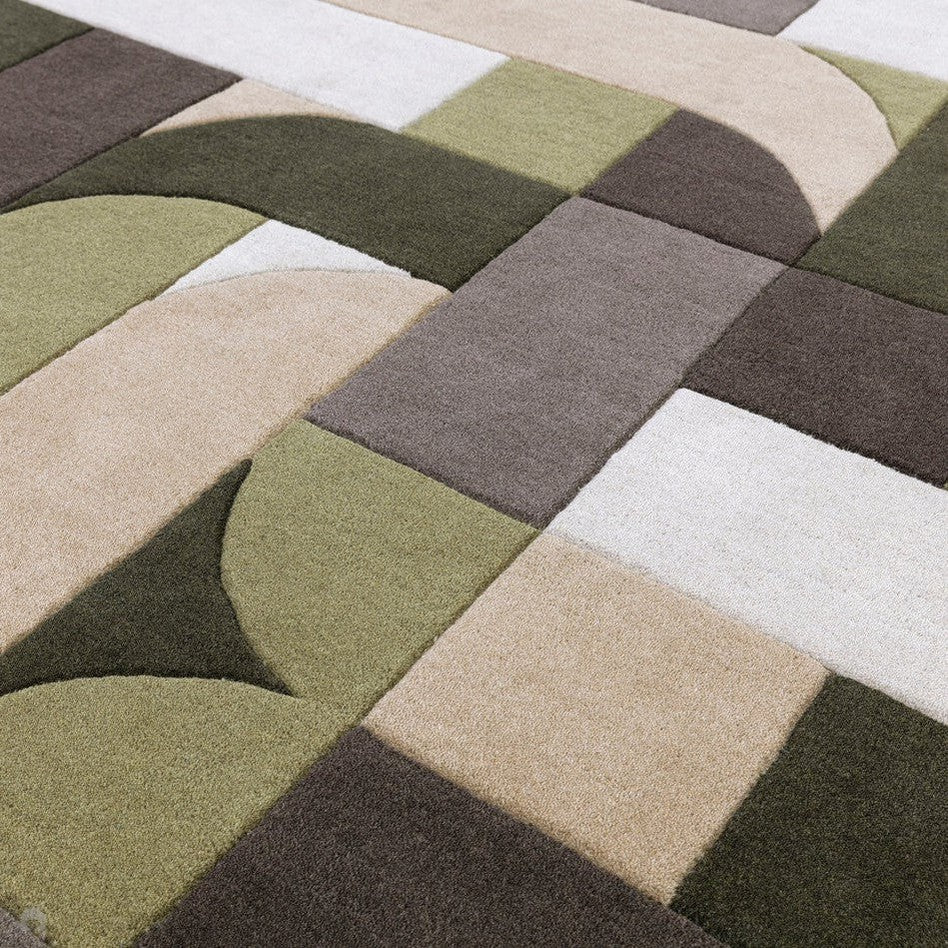 The Matrix MAX90 Klotski Modern Geometric Rug artfully blends Sage Green, Olive Green, Taupe, Charcoal Grey, Ivory, and Dark Brown into an intricate, contemporary design inspired by architectural geometry. The interplay of matte wool and lustrous viscose adds dimensional depth, while the high-density 12–14mm pile offers both comfort and resilience.