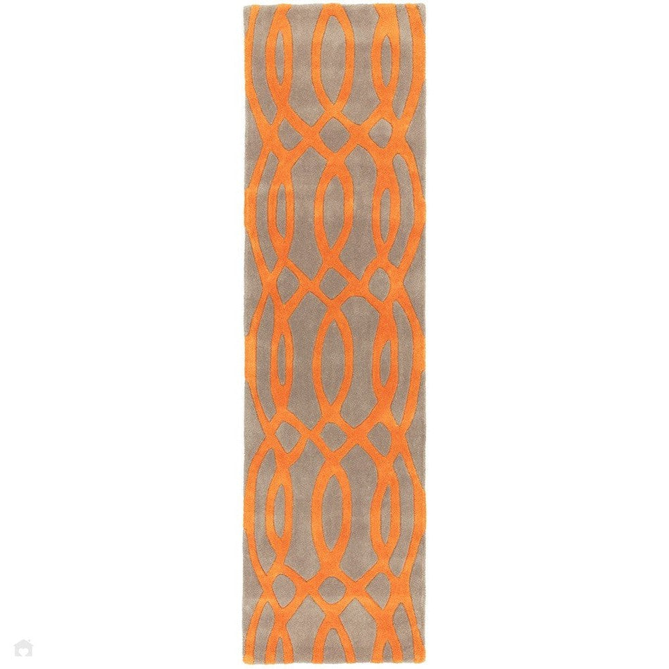 The Matrix MAX37 Wire Modern Geometric Warm Beige/Burnt Orange Runner introduces warmth and energy to contemporary interiors through its striking interlaced wire pattern, rendered in a rich, earthy palette of burnt orange, beige, and light brown. The flowing, organic linework contrasts beautifully against its soft neutral base, creating a dynamic yet balanced composition that radiates modern sophistication. This design harmoniously blends mid-century inspiration with bold modern geometry, where fluid movement meets precision craftsmanship. The vibrant orange detailing adds a lively focal point, while the gentle beige and brown undertones bring warmth and depth, making it an ideal choice for living rooms, dining areas, and creative spaces seeking both vibrancy and comfort.