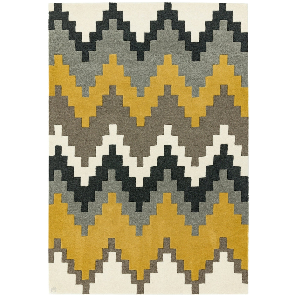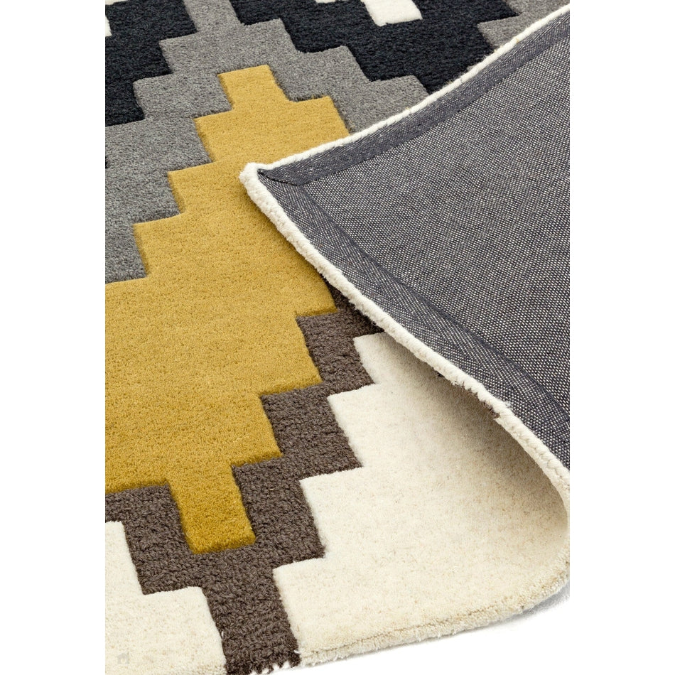 Introducing the Matrix MAX69 Cuzzo Geometric Wool Mustard Yellow/Multi Rug from the Matrix collection. This striking design features a tribal-inspired geometric pattern in a bold combination of mustard yellow, beige, and grey, delivering a modern yet timeless aesthetic. The pattern is carefully crafted so that the texture shifts subtly from one colour block to the next, enhancing depth without compromising the rug’s clean, sharp lines.