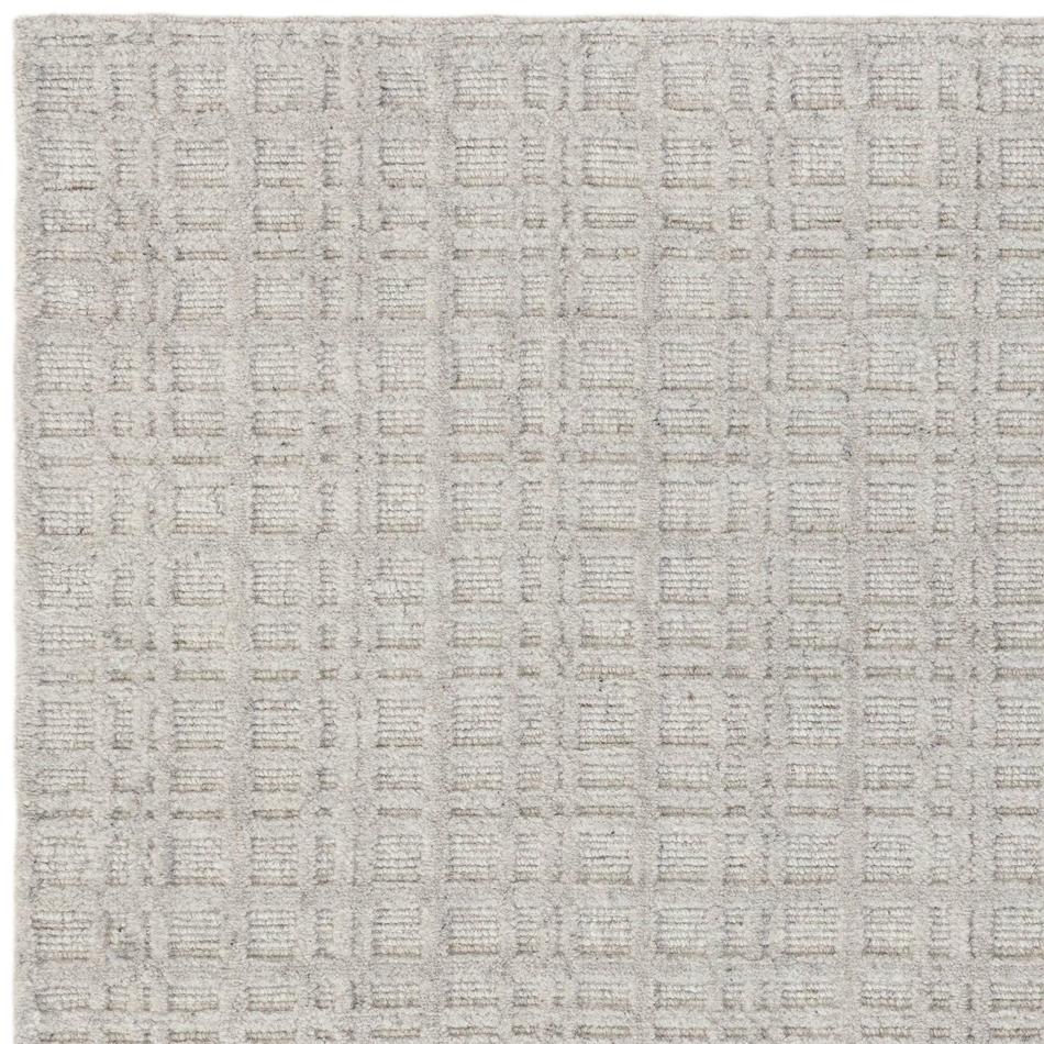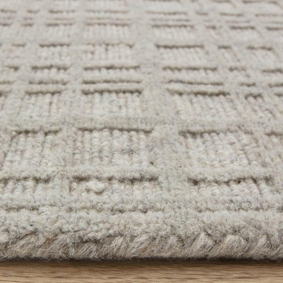 Thatch Modern Plain Geometric Grid Hand-Woven Textured Hi-Lo Ribbed Loop Pile Low-Profile Wool-Blend Greige Mist Rug