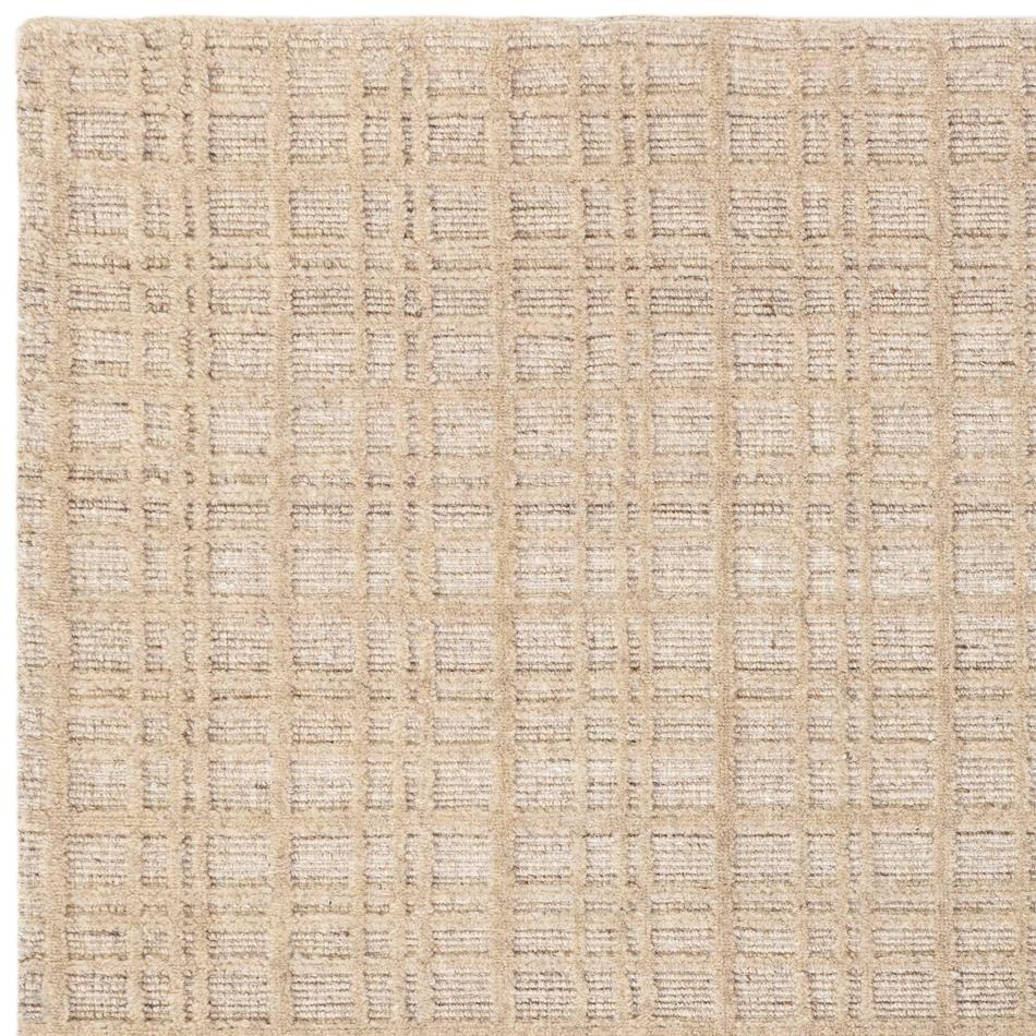 Thatch Modern Plain Geometric Grid Hand-Woven Textured Hi-Lo Ribbed Loop Pile Low-Profile Wool-Blend Sand Beige Rug