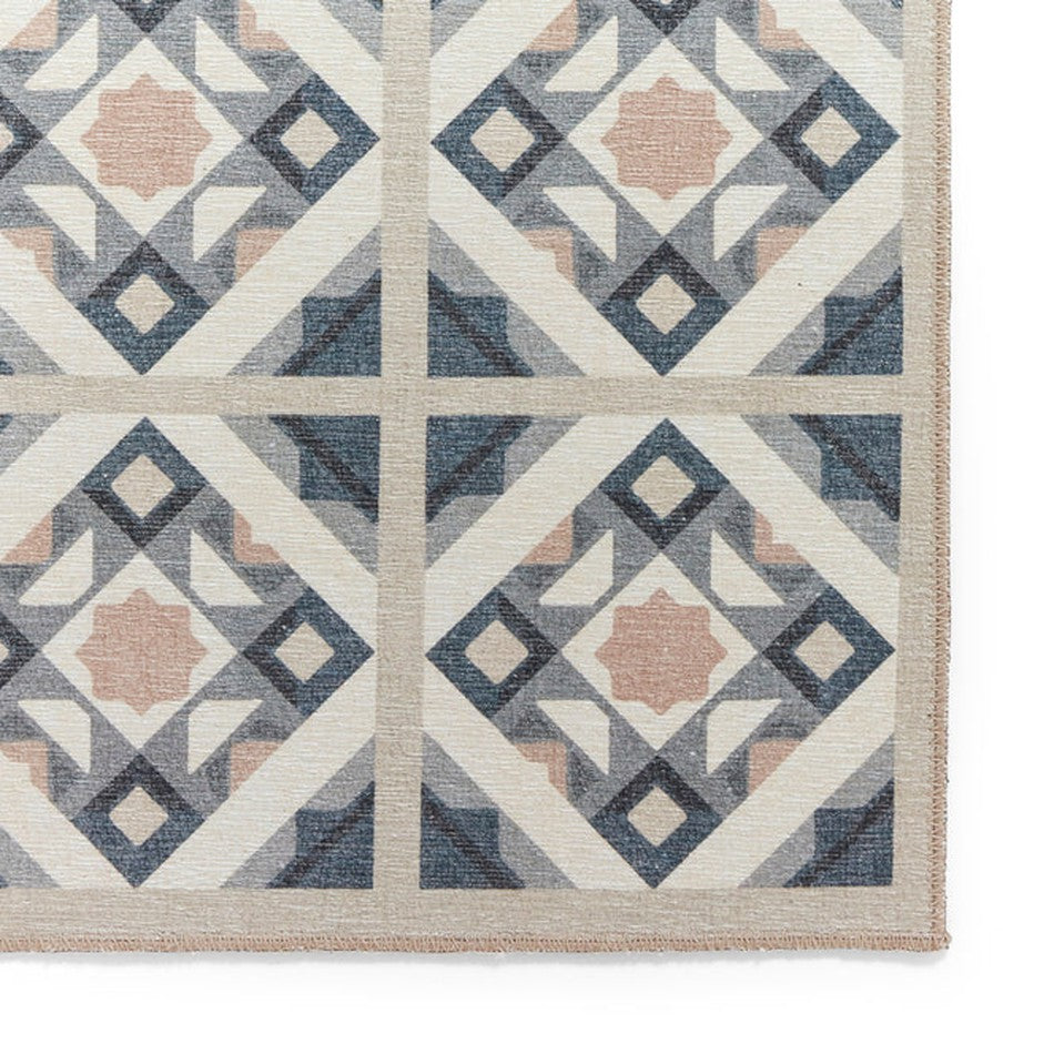 The Washable Victoria H1187 Grey/Clay Rose Rug combines modern simplicity with vintage tiled artistry, showcasing a diamond lattice and star motif that evokes timeless charm with a contemporary edge. Crafted from mixed recycled polyester in a digitally printed flatweave, it delivers crisp geometric detail, a smooth low-profile texture, and a subtle sheen while supporting sustainable materials. Made in Turkey using advanced digital printing technology, it offers lasting pattern clarity and colour stability. With a 0.2cm slim pile height, it sits neatly beneath furniture, creating a refined and eco-conscious finish ideal for hallways, kitchens, and modern living spaces. The integrated anti-slip backing enhances safety, stability, and adds an extra layer of practicality for everyday use.