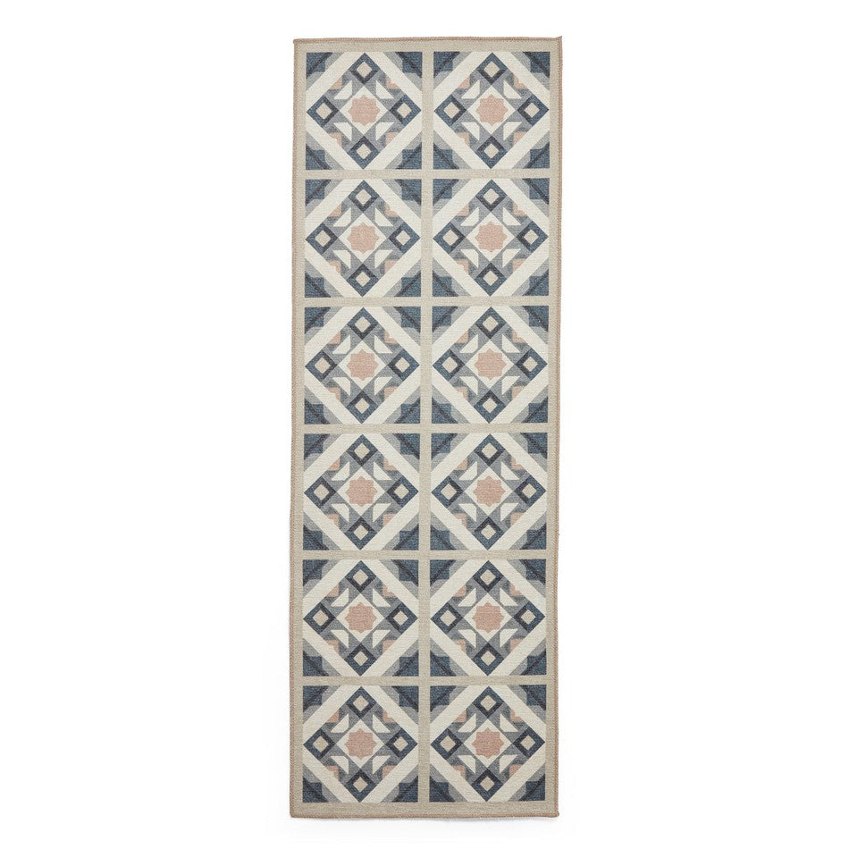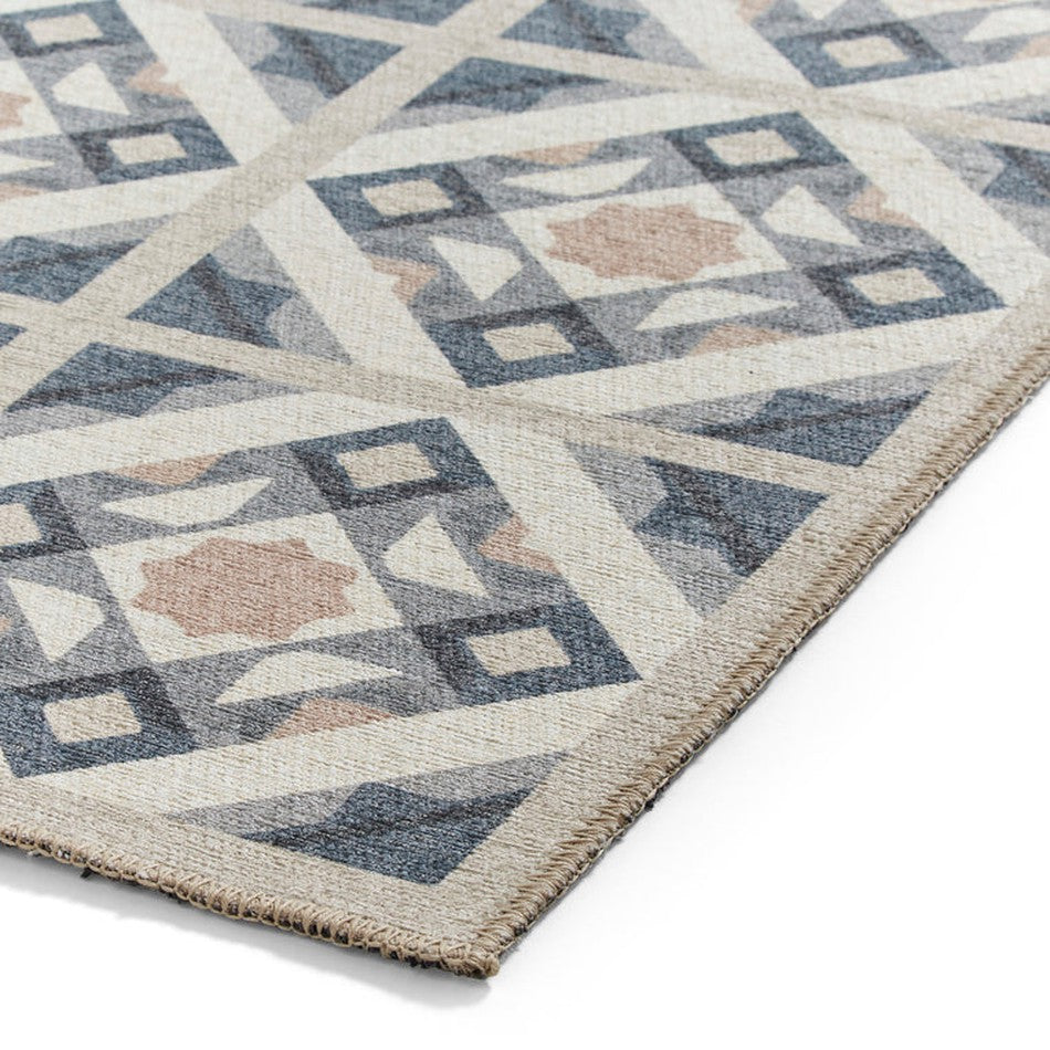 The Washable Victoria H1187 Grey/Clay Rose Rug blends Slate Blue-Grey, Clay Rose, Soft Taupe Beige, and Ivory in a diamond lattice and star-inspired tile pattern that bridges modern and vintage aesthetics. Its flatweave, low-profile construction ensures a smooth, durable surface, complemented by digitally printed detailing for clean precision and lasting vibrancy. Made in Turkey from mixed recycled polyester, this lightweight, fully washable rug is both stylish and sustainable, offering practicality and charm in equal measure. With its 0.2cm slim pile, it’s perfect for hallways, kitchens, and busy living areas.