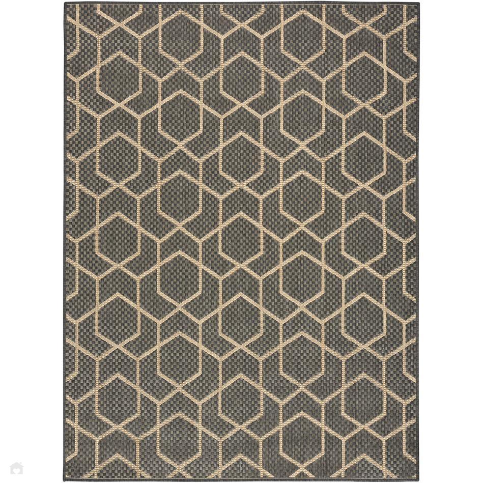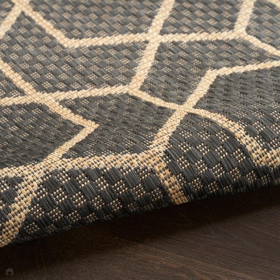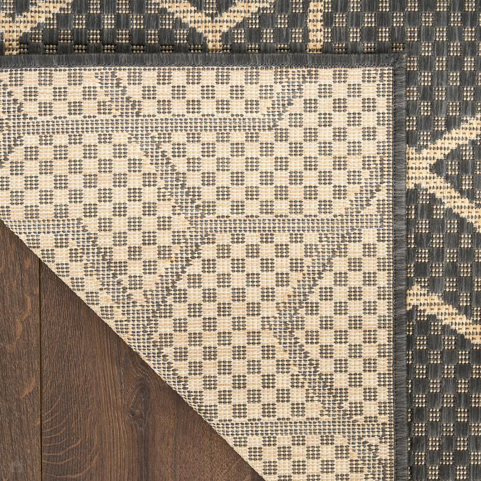 Sleek and modern, this charcoal grey geometric outdoor rug from the Horizon Collection offers a contemporary take on classic design. The eye-catching pattern effortlessly complements a variety of settings from urban balconies to cozy living rooms while adding depth and visual appeal. This flatweave rug is made from a blend of polyester and polypropylene with a subtle high-low pile and tonal variations.