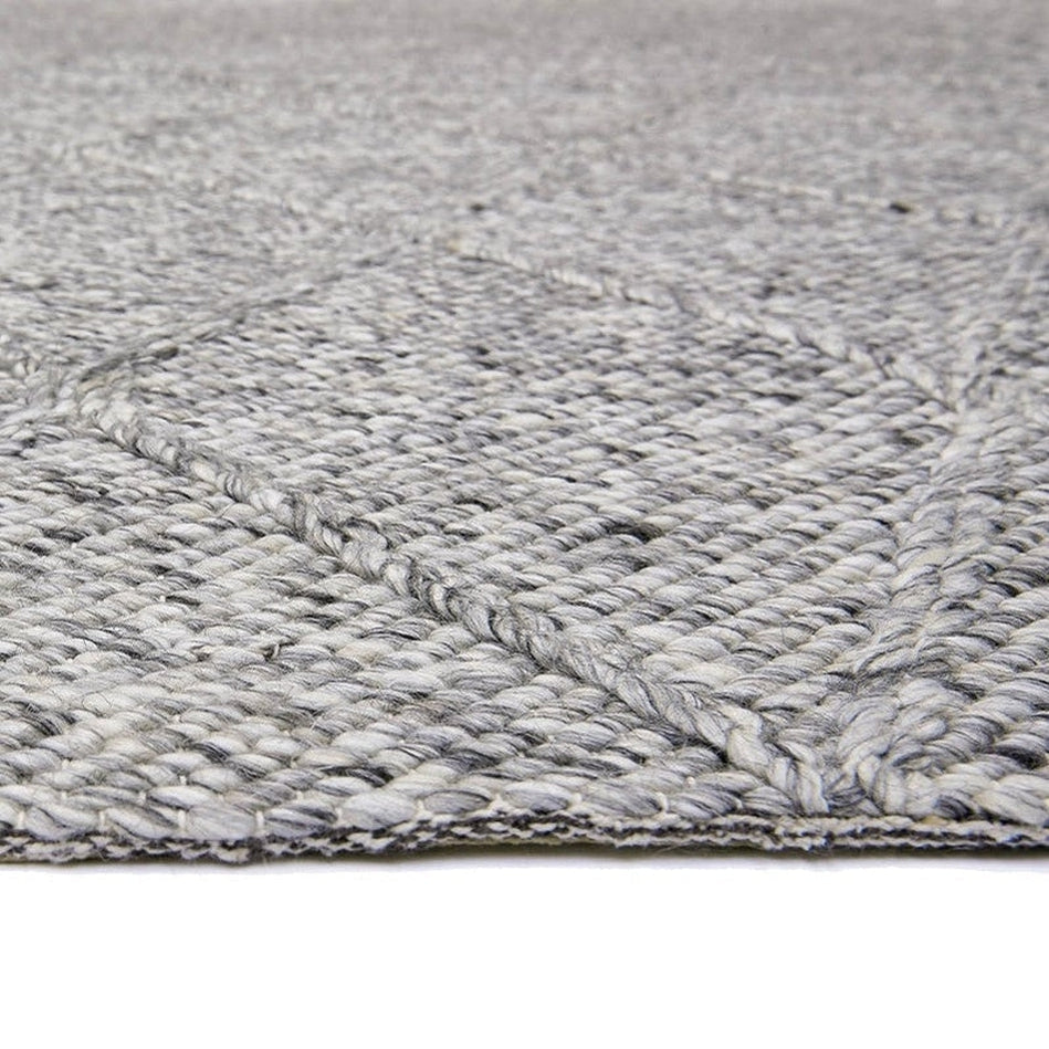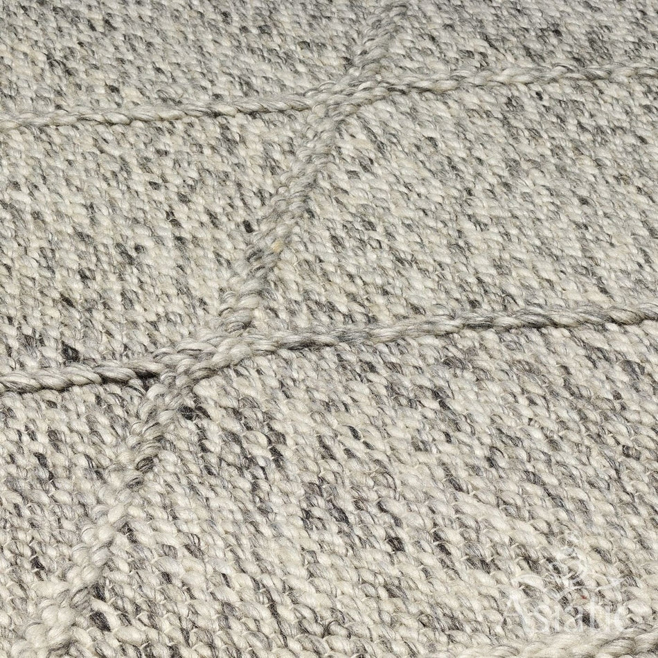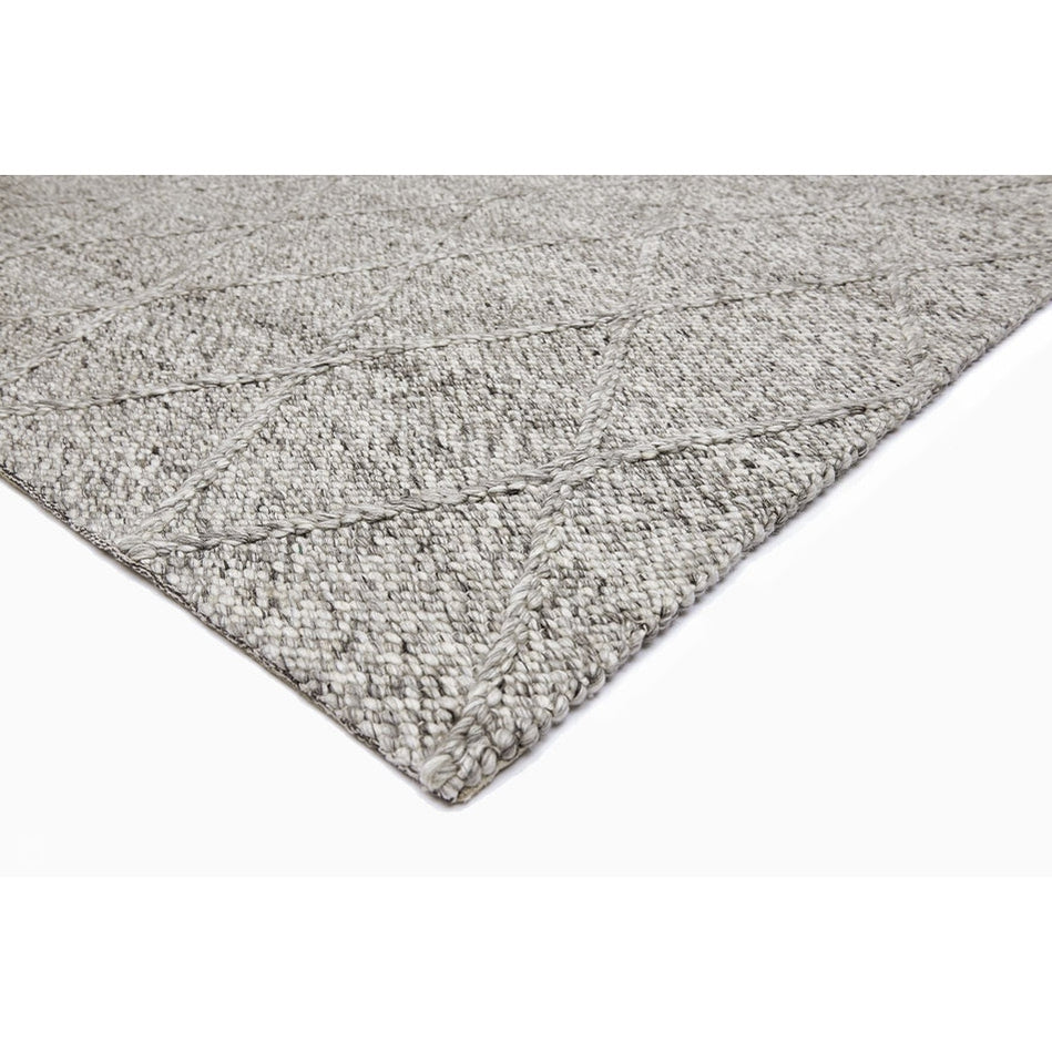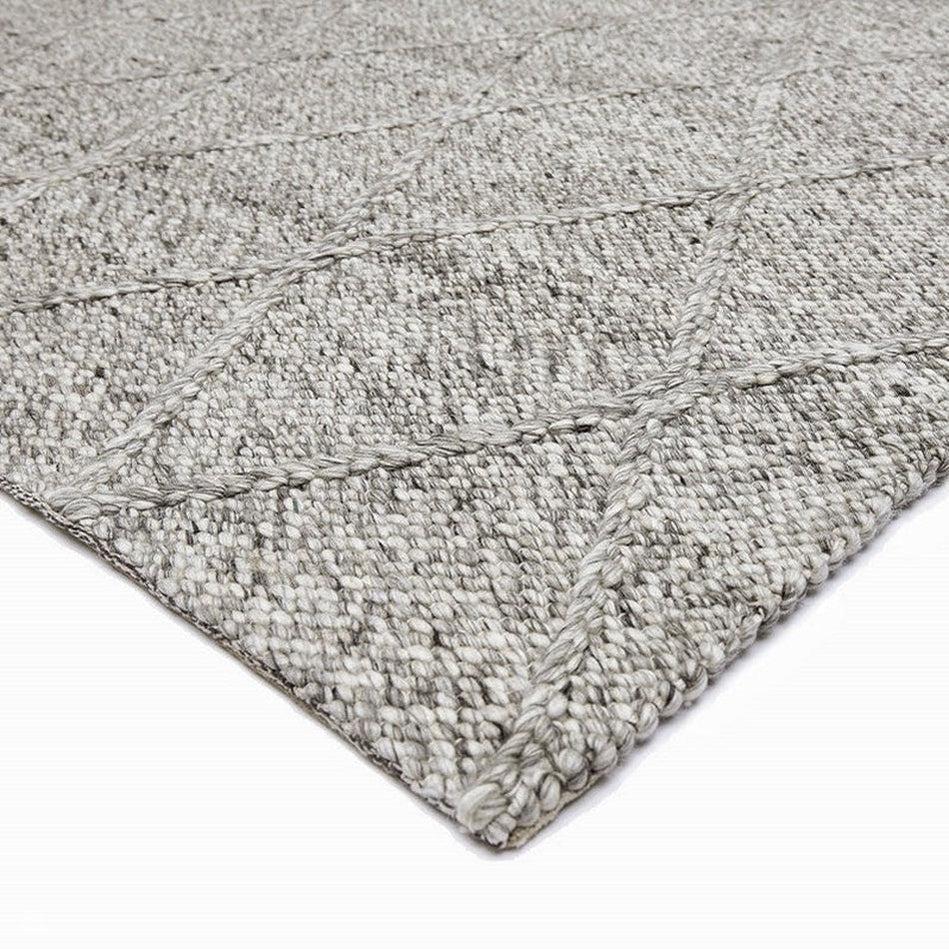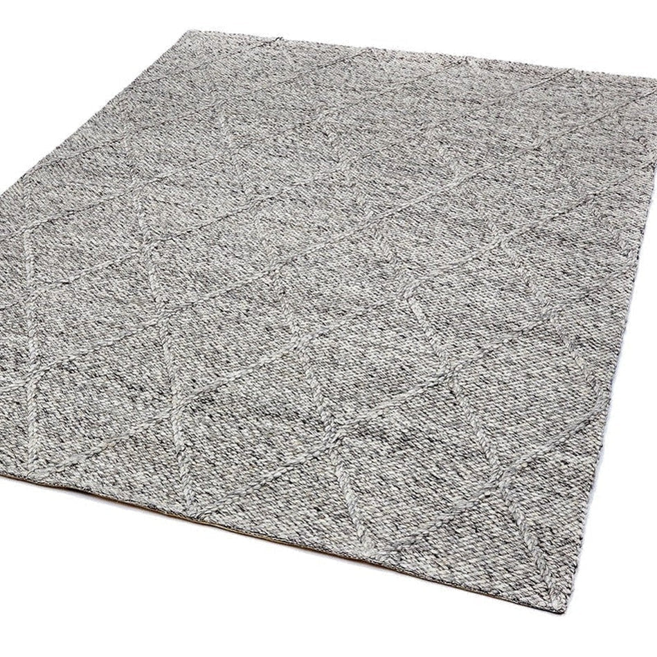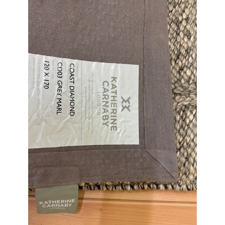 The Katherine Carnaby Coast CD03 Grey Marl Diamond Rug is hand-woven in India using a premium blend of 50% wool and 50% viscose, resulting in a flatweave with a naturally textured, organic feel. The subtle geometric diamond pattern enhances its visual interest, while the neutral greys and ivory sheen make it a versatile choice for living rooms, bedrooms, and open-plan spaces. With its relaxed yet sophisticated style, this rug balances modern design with artisanal quality – perfect for those who value understated luxury.