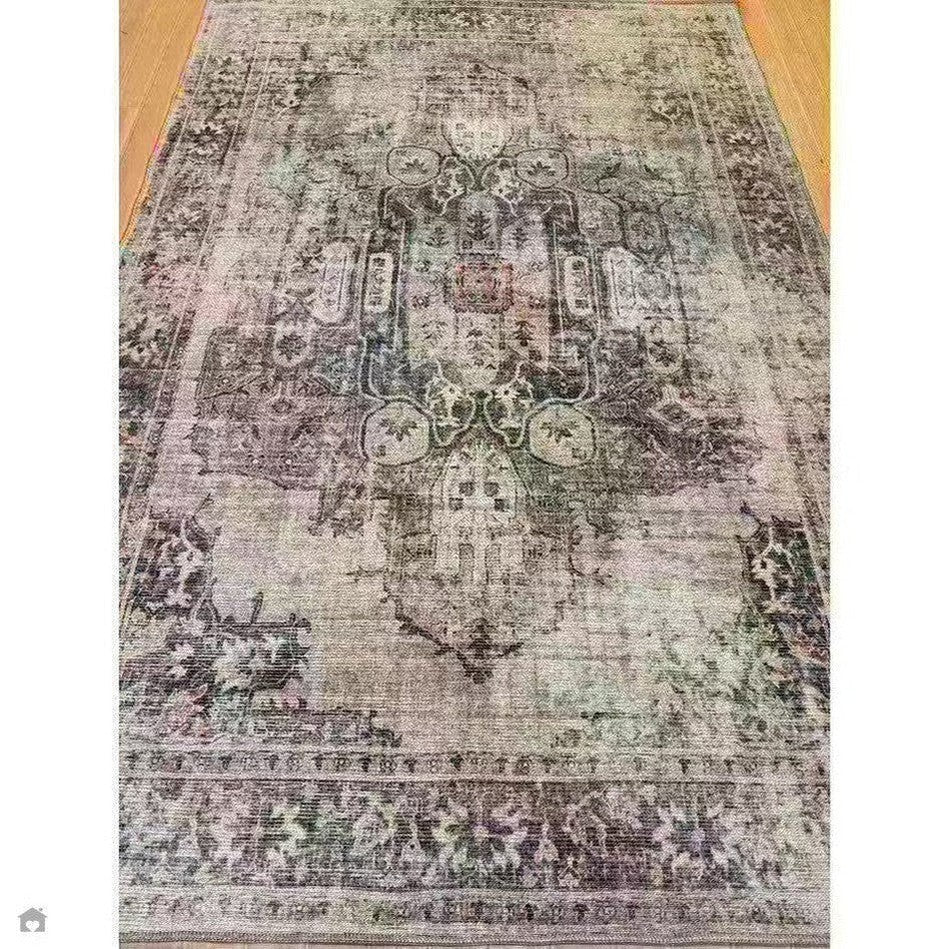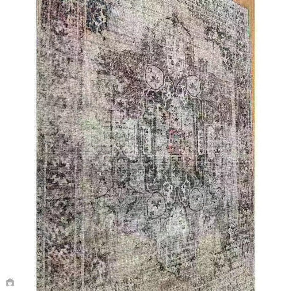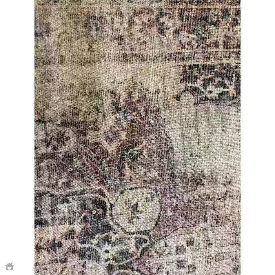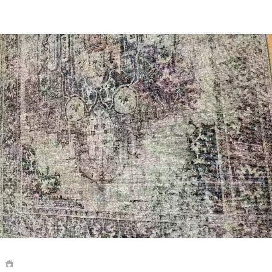 Crafted using flat chenille weaving, the rug combines vintage character with modern practicality — it’s thin enough to fit neatly under furniture yet soft enough to offer everyday comfort. The distressed surface gives the impression of a storied antique find, while the washable material ensures it remains family-friendly and easy to maintain.