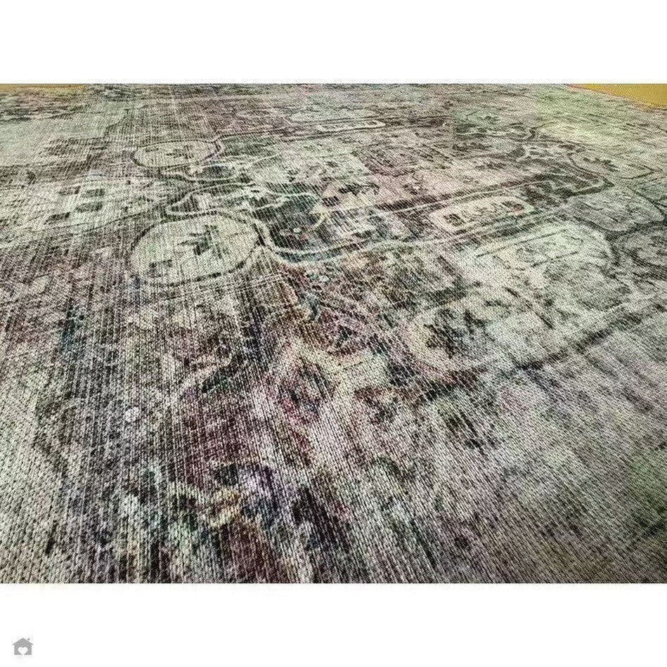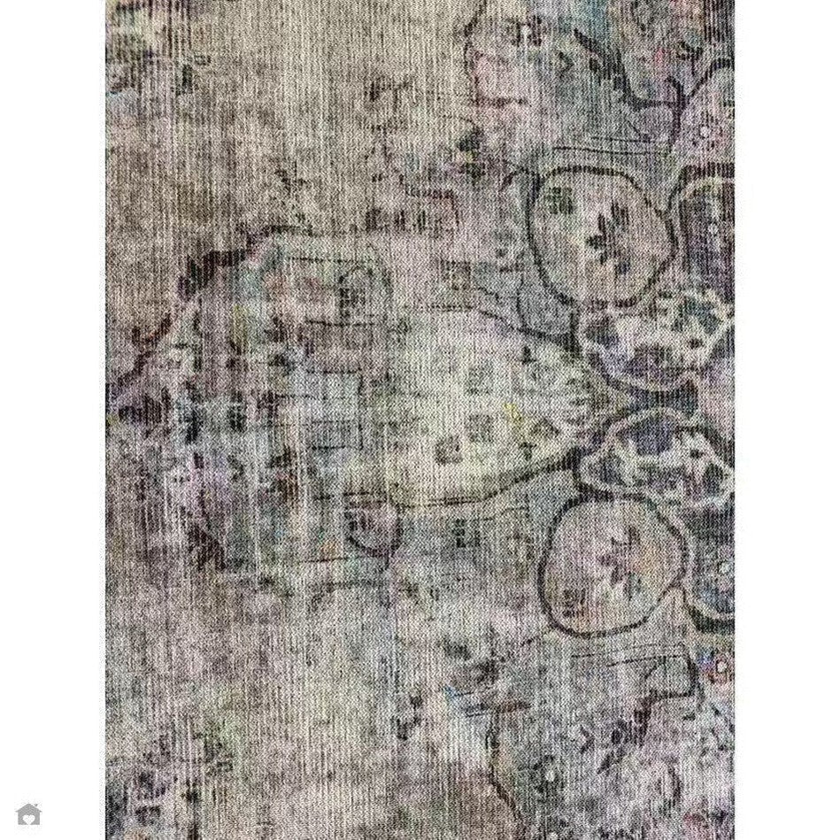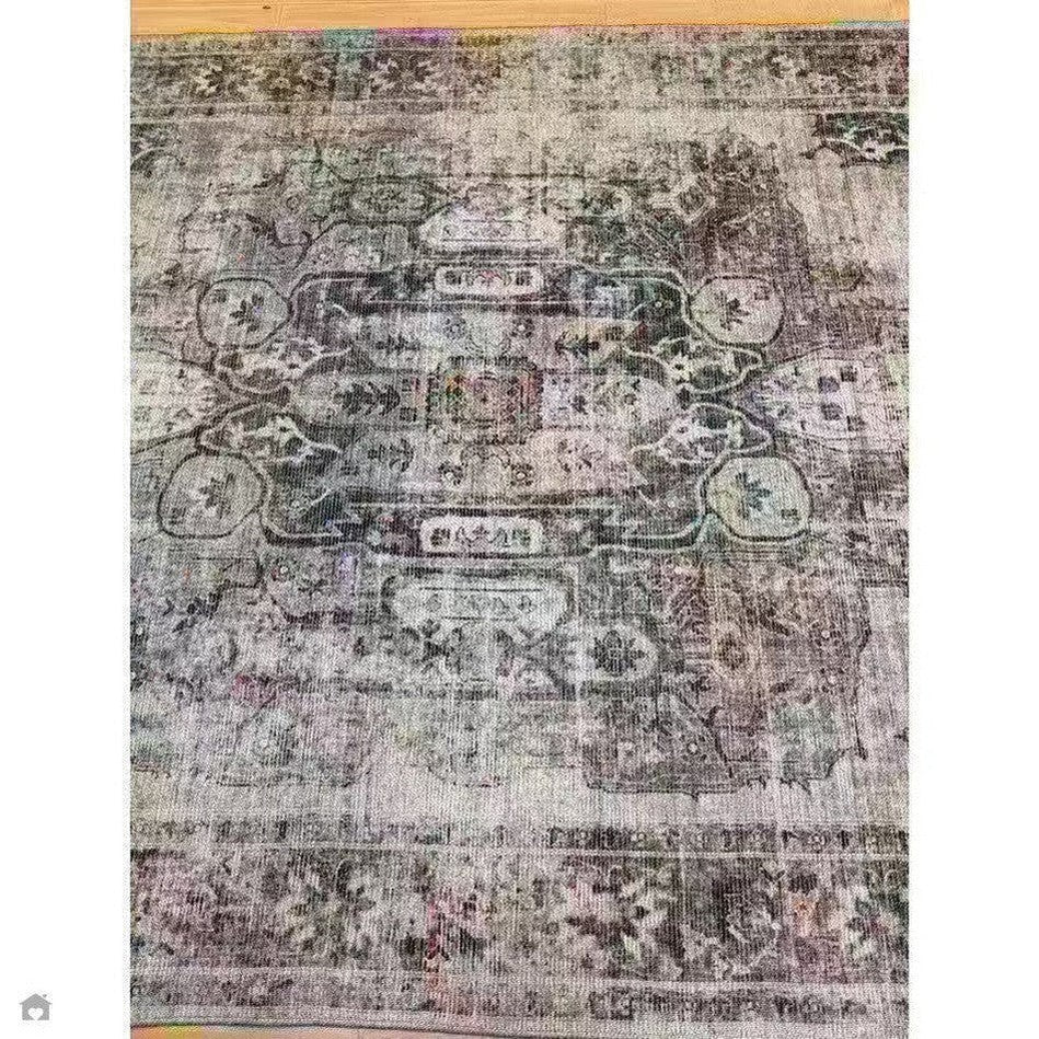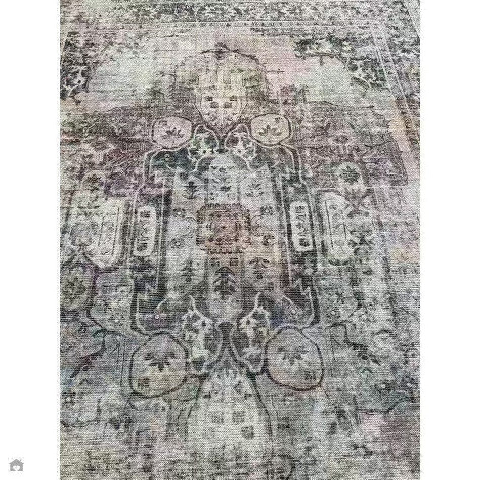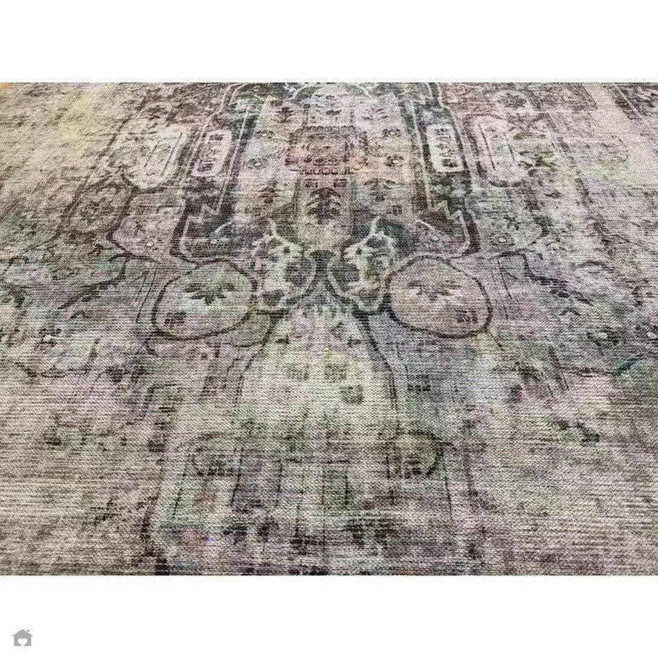 Crafted using flat chenille weaving, the rug combines vintage character with modern practicality — it’s thin enough to fit neatly under furniture yet soft enough to offer everyday comfort. The distressed surface gives the impression of a storied antique find, while the washable material ensures it remains family-friendly and easy to maintain.
