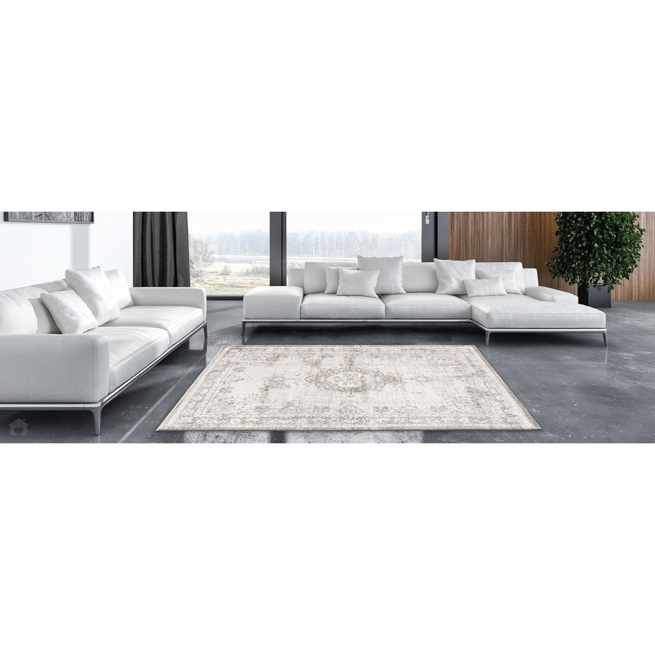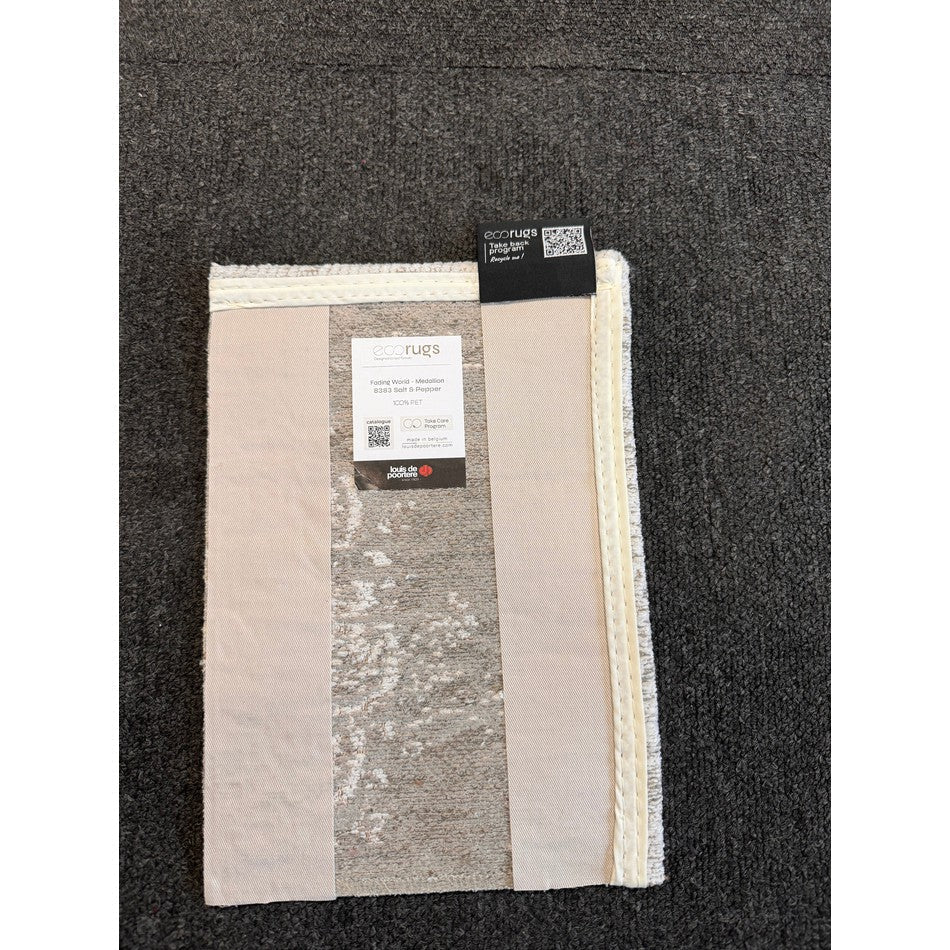 The Louis De Poortere Fading World Medallion 8383 Salt & Pepper Rug combines tones of Soft Ivory, Warm Taupe, Charcoal Grey, and Stone Beige, resulting in an elegant, neutral palette that complements both modern and classic interiors. The faded medallion design evokes heritage charm, while the washed, timeworn texture delivers a sophisticated and lived-in aesthetic.