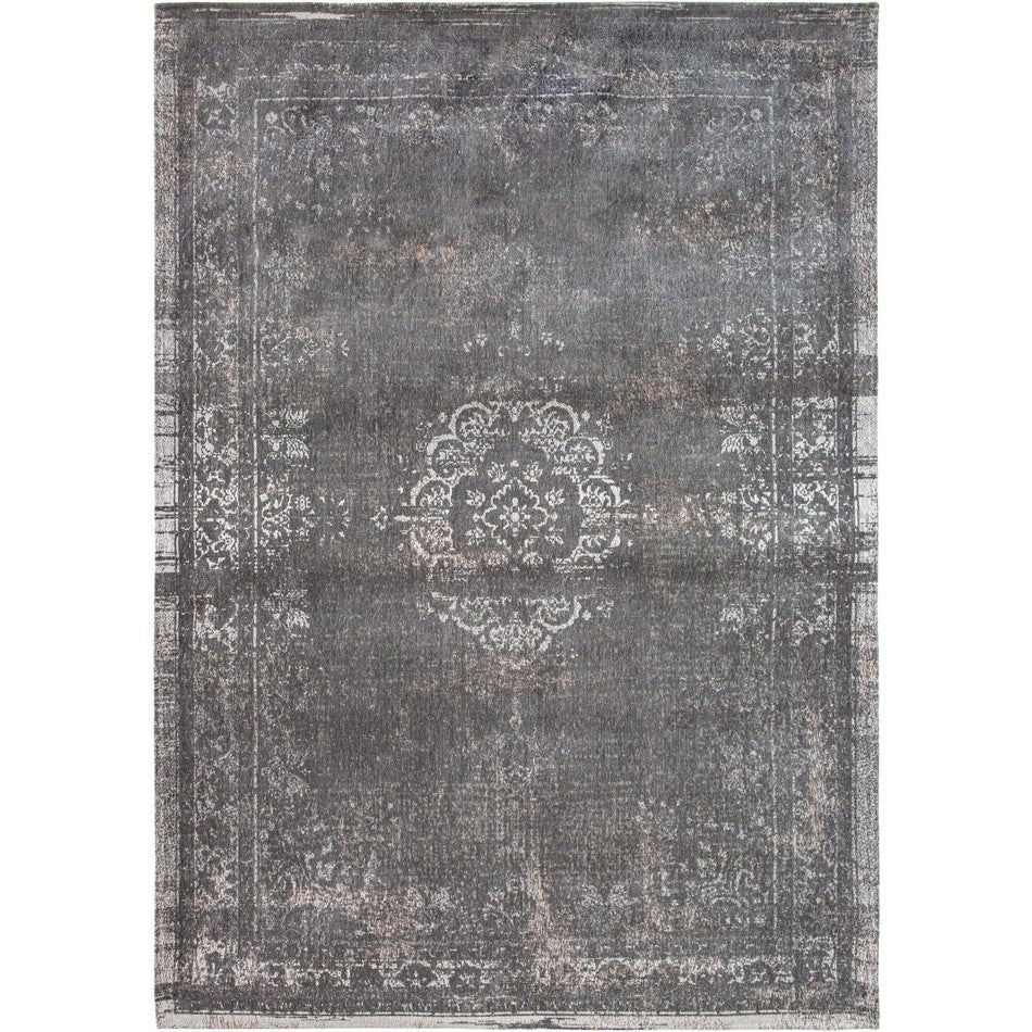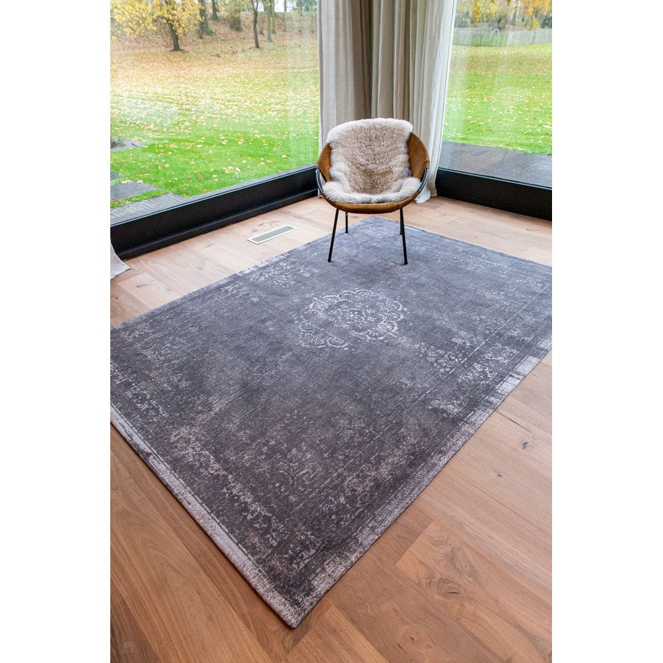 The Louis De Poortere Fading World Medallion 9148 Stone Rug presents a beautifully balanced composition of Charcoal Grey, Stone Grey, Ash Silver, and Slate Taupe, delivering a refined, contemporary twist on a vintage medallion design. The distressed patterning and erased sections evoke timeless elegance, while the textured flatweave ensures versatility across modern and transitional interiors.