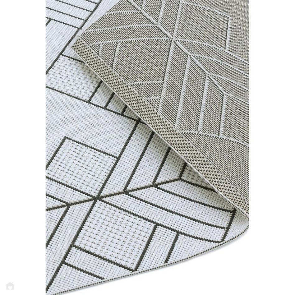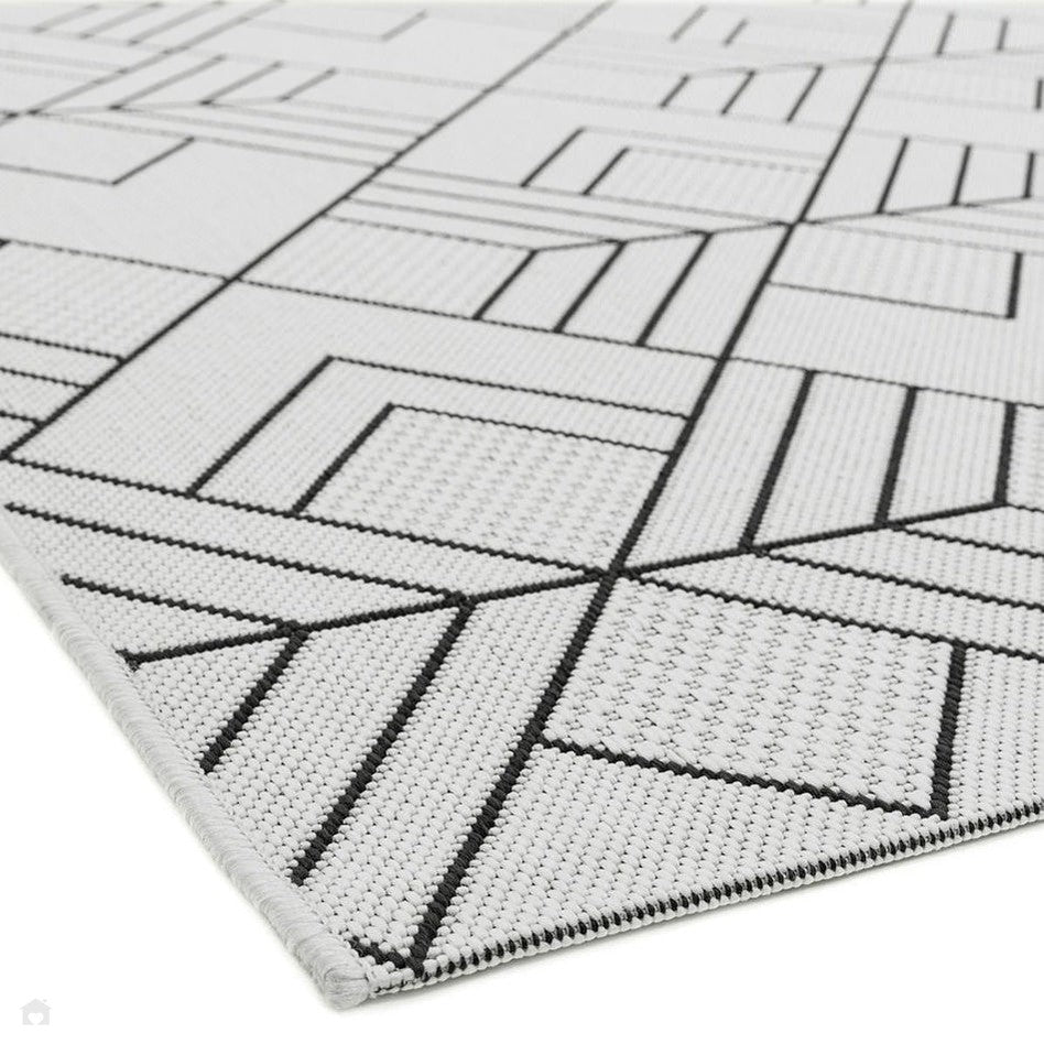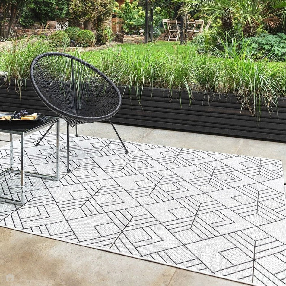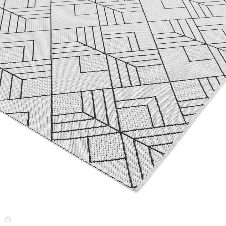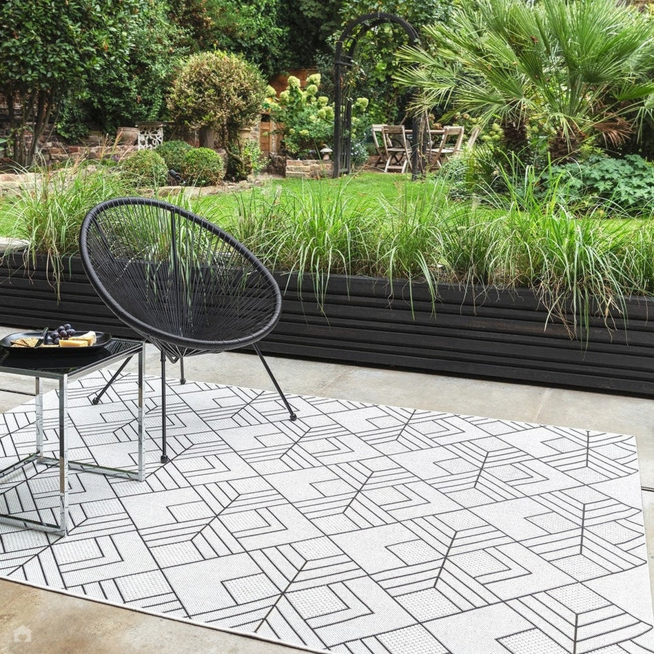 The Patio PAT16 Deco Ivory Rug combines Ivory, Charcoal, and Soft Grey tones in a striking geometric Art-Deco pattern, creating a refined yet modern look for both indoor and outdoor settings. Crafted in Belgium from 100% polypropylene, it features a textured 0.4cm flatweave pile that is durable, weatherproof, UV-resistant, and stain-resistant, offering exceptional practicality without compromising on style. The machine-woven construction ensures precision and strength, while its low-profile surface allows for easy maintenance and year-round versatility. Perfect for patios, decking, kitchens, conservatories, and living areas, this rug blends bold design with dependable durability — a timeless addition to any contemporary home.