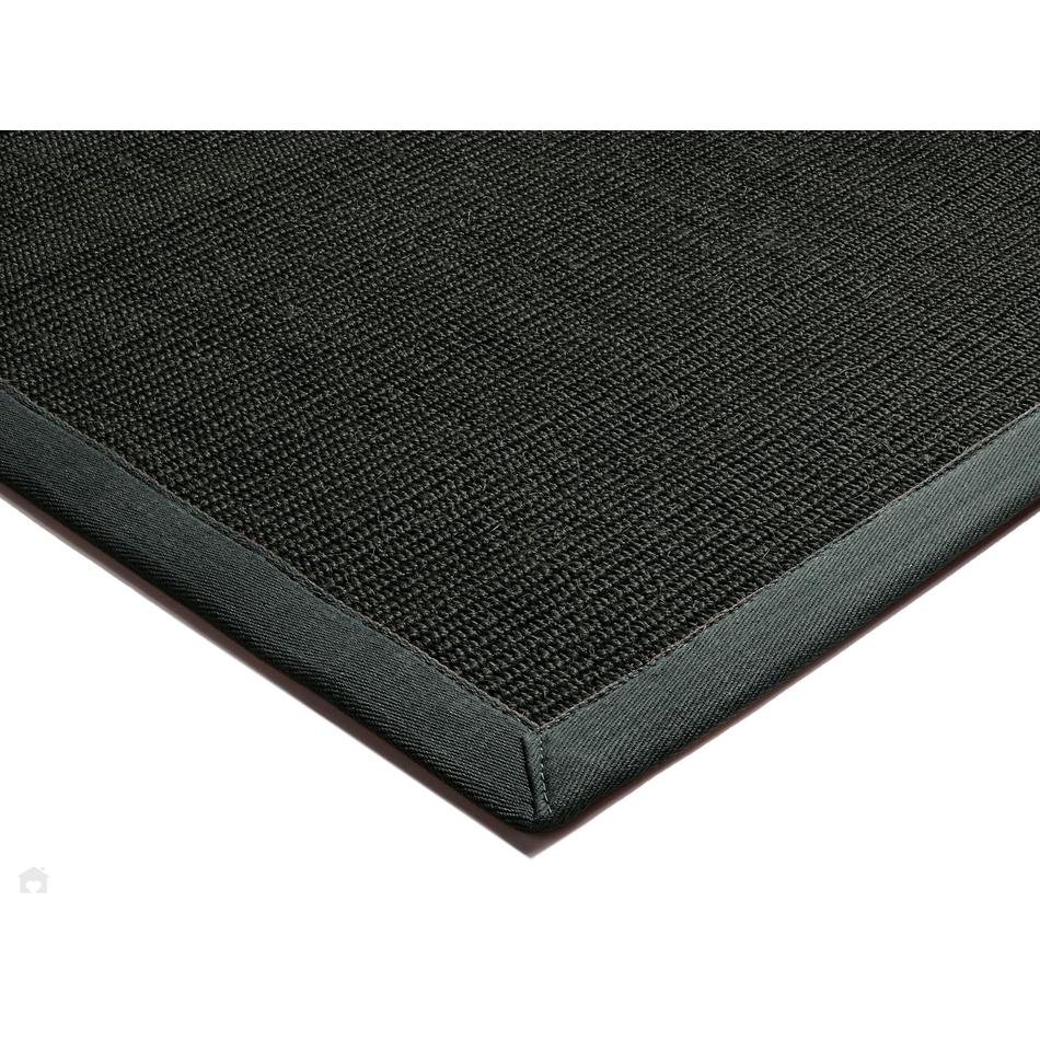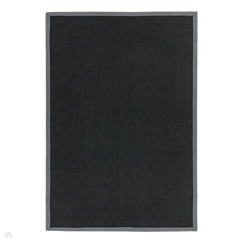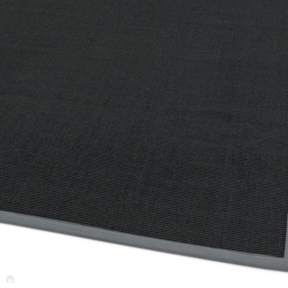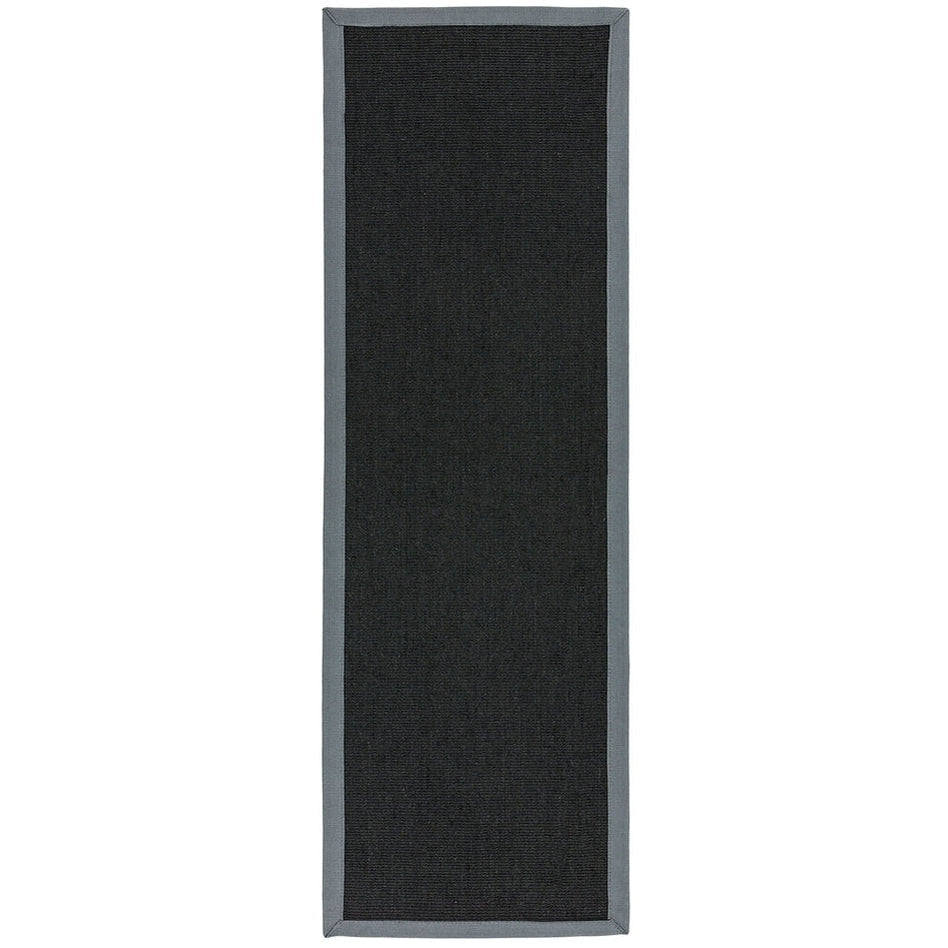 The Sisal Plain Border Black/Steel Grey Runner from the Sisal collection combines earthy natural texture with a refined contemporary edge. Expertly crafted from 100% natural sisal fibres, it features a ribbed flatweave design with a distinctive handwoven look and tactile texture that highlights the beauty of raw plant fibres. The surface has a firm, slightly coarse feel typical of sisal, making it durable, resilient, and ideal for high-traffic areas. Finished with a cotton border for definition and an anti-slip backing for added stability, this rug is both practical and stylish—perfect for hallways, kitchens, and modern living spaces.