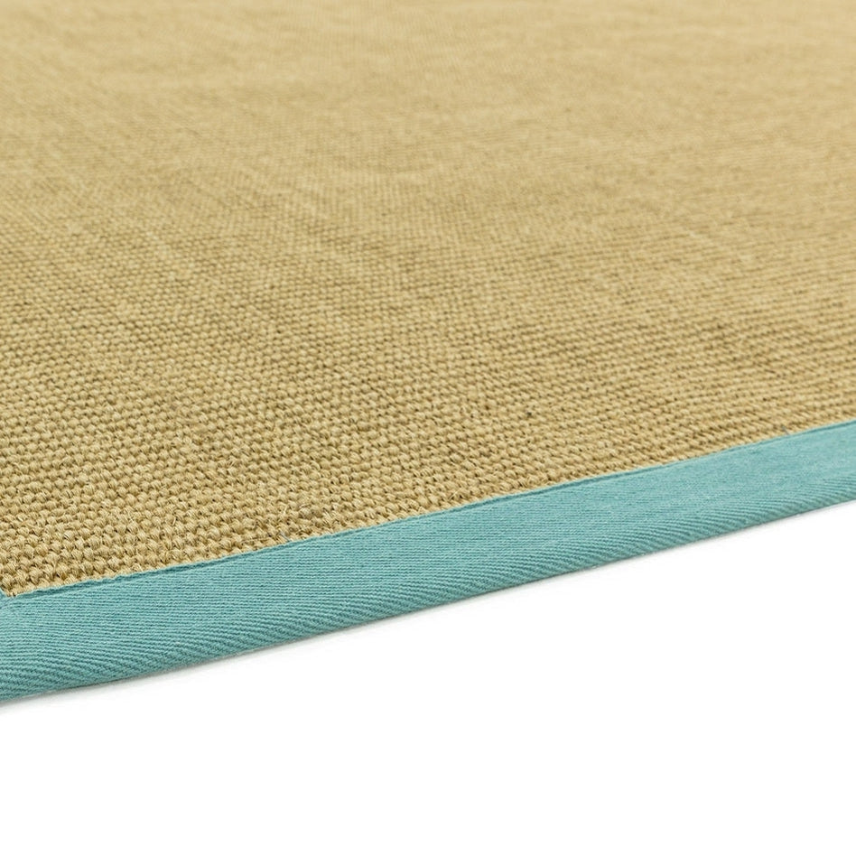 Aqua Blue – Displayed on the cotton border, this refreshing light blue shade introduces a cool, coastal accent that contrasts beautifully with the warm natural sisal. Its airy tone adds brightness and a relaxed contemporary touch, perfect for uplifting neutral or seaside-inspired interiors.