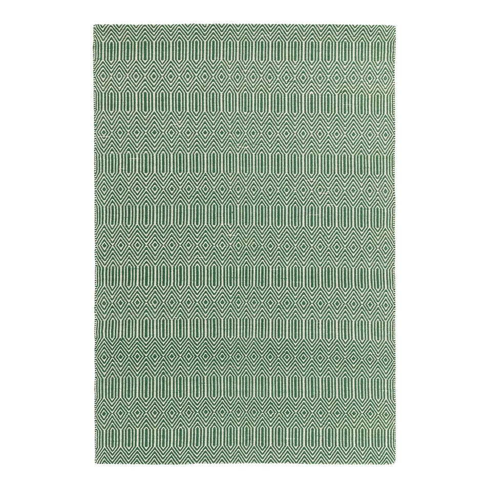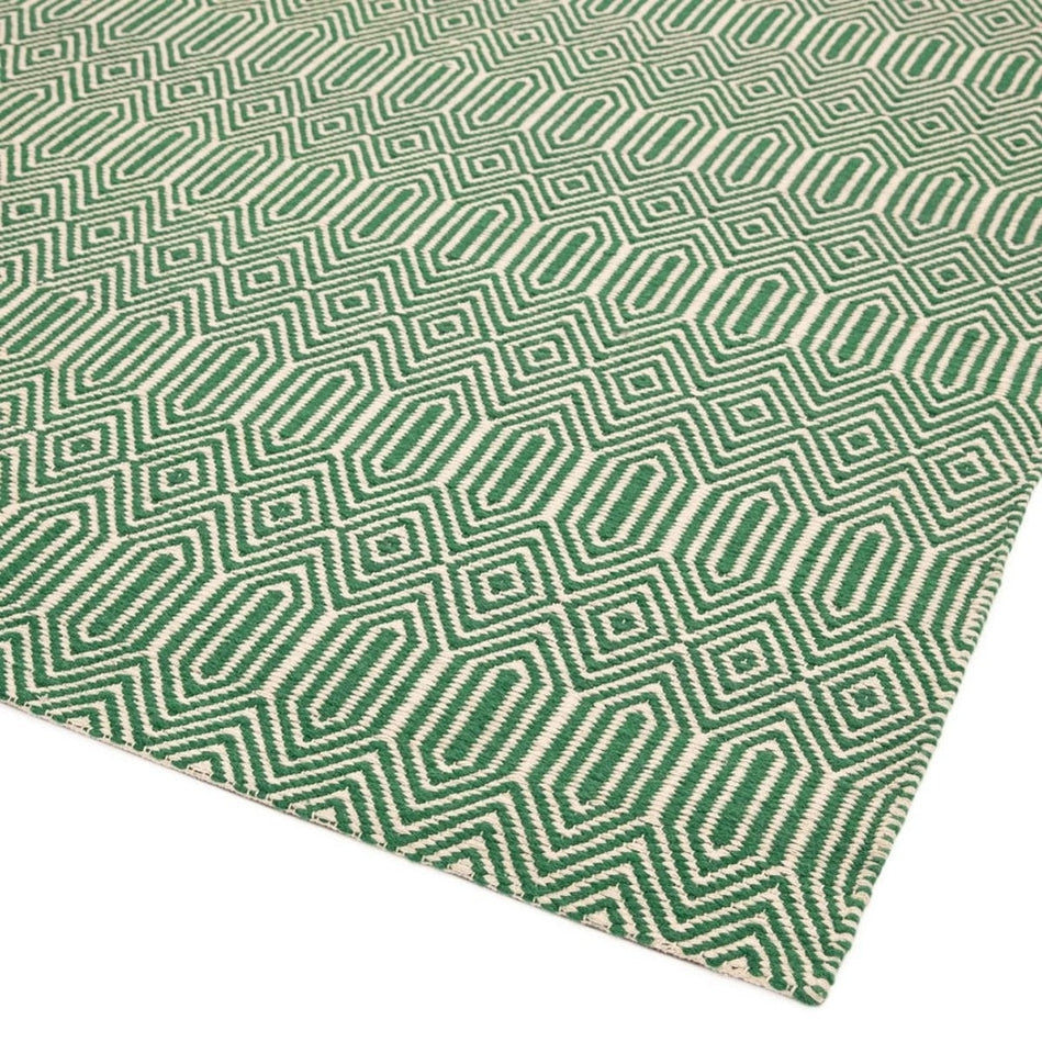 The Sloan Green Rug combines Leaf Green, Ivory, and Sage tones within a hand-woven geometric flatweave design crafted from a luxurious wool-and-cotton blend. With its durable 0.4 cm pile and soft, textured finish, this rug offers both modern style and natural warmth, perfect for living rooms, dining areas, or relaxed, nature-inspired interiors.