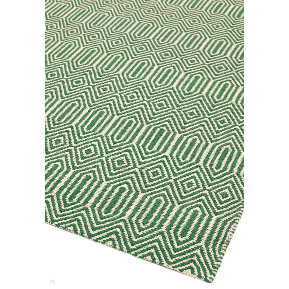 Its geometric diamond pattern is woven in fresh green and soft ivory yarns, producing a lively yet balanced contrast that brightens and refreshes interior spaces. The soft-touch wool fibres and natural cotton backing ensure comfort underfoot while maintaining excellent durability for living rooms, dining spaces, and contemporary homes. Sloan draws inspiration from traditional hand-woven textiles, featuring rhythmic geometric motifs that echo ethnic and tribal design heritage redefined in modern geometric simplicity through clean lines and balanced symmetry for minimalist, Scandinavian, or urban interiors. Sloan brings effortless sophistication to contemporary living spaces.