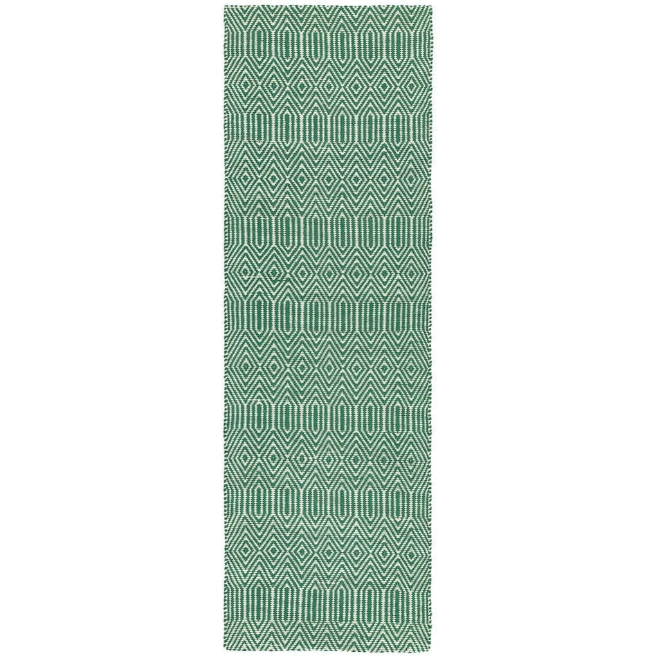 The green hue evokes a sense of calm and nature, while the ivory detailing adds crisp definition to the modern pattern. The result is a stylish and versatile piece that complements Scandinavian, botanical, and mid-century interiors alike.