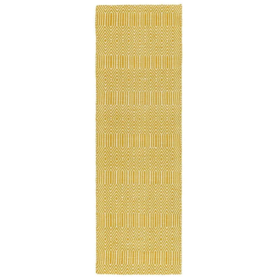 The Sloan Mustard Rug from the Sloan collection infuses interiors with uplifting warmth and modern geometric texture. Hand-woven in India from a premium blend of 55% wool and 45% cotton, it features a durable flatweave structure and a low 0.4 cm profile, offering both practicality and tactile charm.
