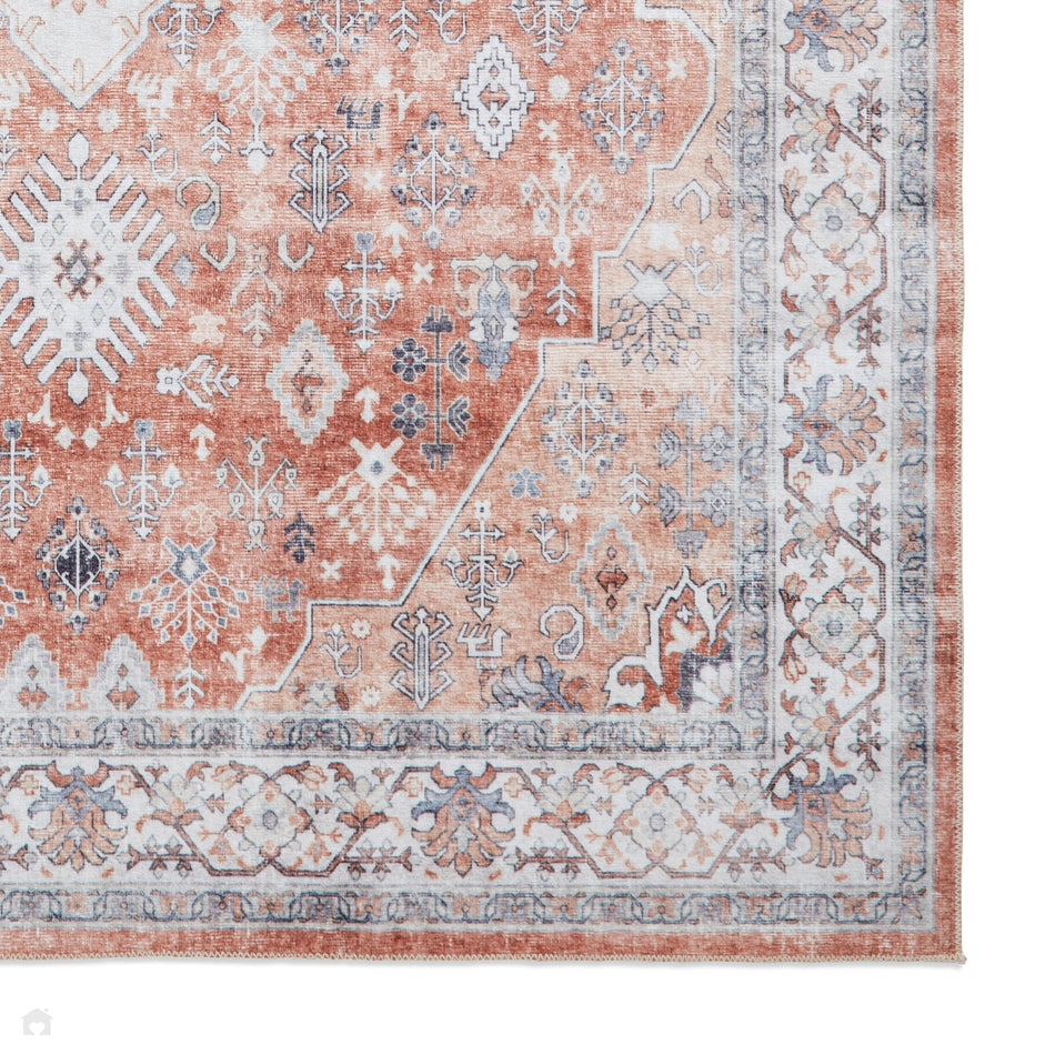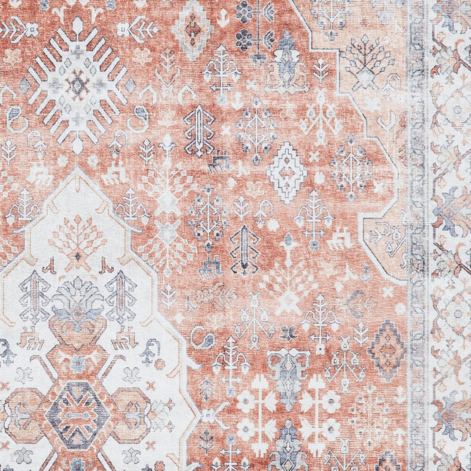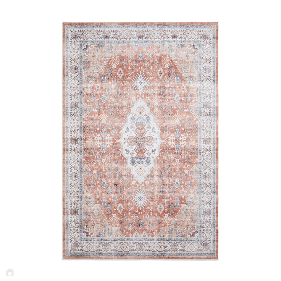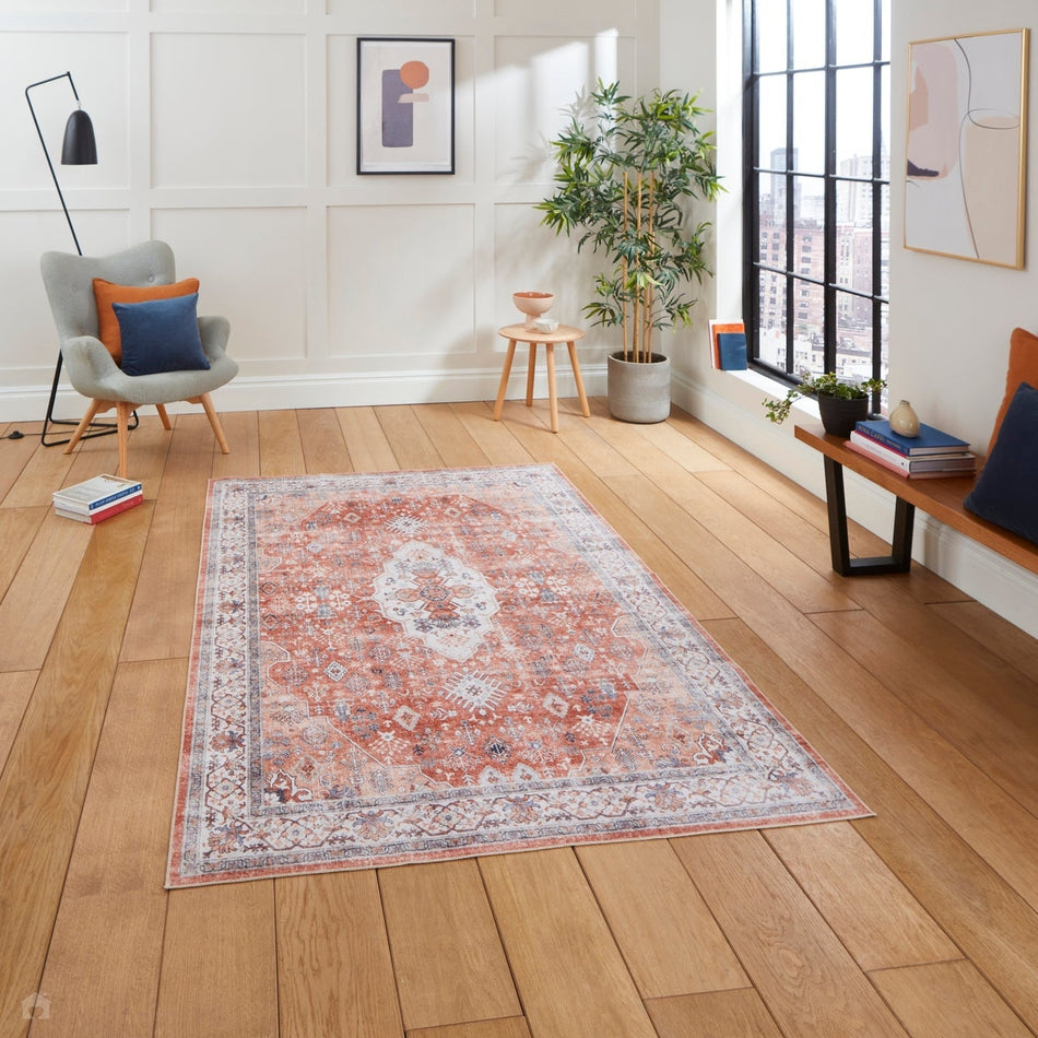 The Washable Tabriz H1156 Terra Rug is a rich and inviting piece that brings warmth and depth to any interior. Featuring a distressed medallion design, this rug combines a terracotta-toned base with cool and neutral accents, creating a striking yet harmonious look that works beautifully in both traditional and transitional settings. Crafted from 100% lightweight polyester, this rug is digitally printed for exceptional pattern precision and colour clarity. Its flatweave construction results in a sleek, mat-like finish with no pile height, making it ideal for placement under furniture or in busy areas where practicality is essential.