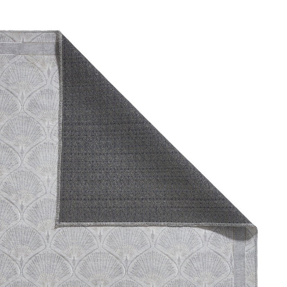 The Washable Catherine Lansfield Deco Peacock Silver Rug beautifully blends Silver Grey, Pale Stone, Platinum, Ivory White, Frosted Grey, Champagne Cream, and Ash Taupe in a refined Art Deco-inspired composition. Its flatweave, low-profile construction provides a smooth, lightweight finish, while the digitally printed detailing enhances every fine curve of the iconic fan design. Made in Turkey from 100% polyester, this fully washable rug offers both elegance and practicality — ideal for living rooms, bedrooms, and calm, neutral-toned interiors. With its 0.2cm slim profile, it delivers understated glamour and timeless style to any setting.