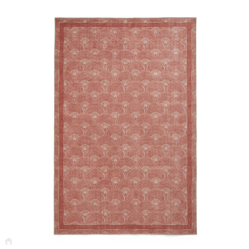 The Washable Catherine Lansfield Deco Peacock Terracotta Rug captures timeless Art Deco sophistication with a warm, contemporary twist. Featuring a digitally printed fan motif inspired by vintage peacock feather patterns, this design combines vintage charm with modern practicality. The soft terracotta tones add warmth and richness, while the detailed geometric fan pattern brings a sense of structure and elegance to any room. Crafted from lightweight, digitally printed polyester flatweave, it offers a smooth, low-profile finish that sits neatly beneath furniture and is ideal for high-traffic spaces. Made in Turkey from 100% polyester, this rug is fully machine washable, combining effortless care with enduring style. With its 0.2cm slim profile, it delivers both comfort and practicality for everyday living.