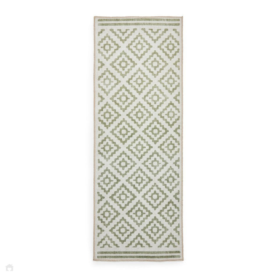 The Washable Coral H1058 Green Runner brings a natural, refreshing charm to any space with its geometric lattice pattern in Sage Green, Olive Green, Pale Grey, and Ivory. Its flatweave, low-profile construction offers a smooth, durable surface ideal for placement beneath furniture, while digitally printed detailing ensures clarity and crisp definition. Made in Turkey from mixed recycled polyester, this lightweight and fully washable rug blends eco-conscious design with modern practicality. With its 0.2cm slim profile, it’s perfect for kitchens, living rooms, or relaxed modern interiors where subtle earthy tones add warmth and tranquillity.
