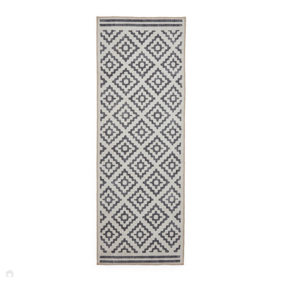 The Washable Coral H1058 Grey Rug offers a refined and versatile aesthetic defined by its geometric diamond pattern in Steel Grey, Slate Grey, Light Grey, and Ivory. Its flatweave, low-profile construction ensures a smooth finish ideal for placement beneath furniture, while digitally printed detailing enhances the precision and clarity of the pattern. Made in Turkey from mixed recycled polyester, this lightweight and fully washable rug unites sustainability, practicality, and style. With its 0.2cm slim profile, it’s ideal for high-traffic areas such as living rooms, dining spaces, and hallways, bringing a cool, modern edge to contemporary interiors.