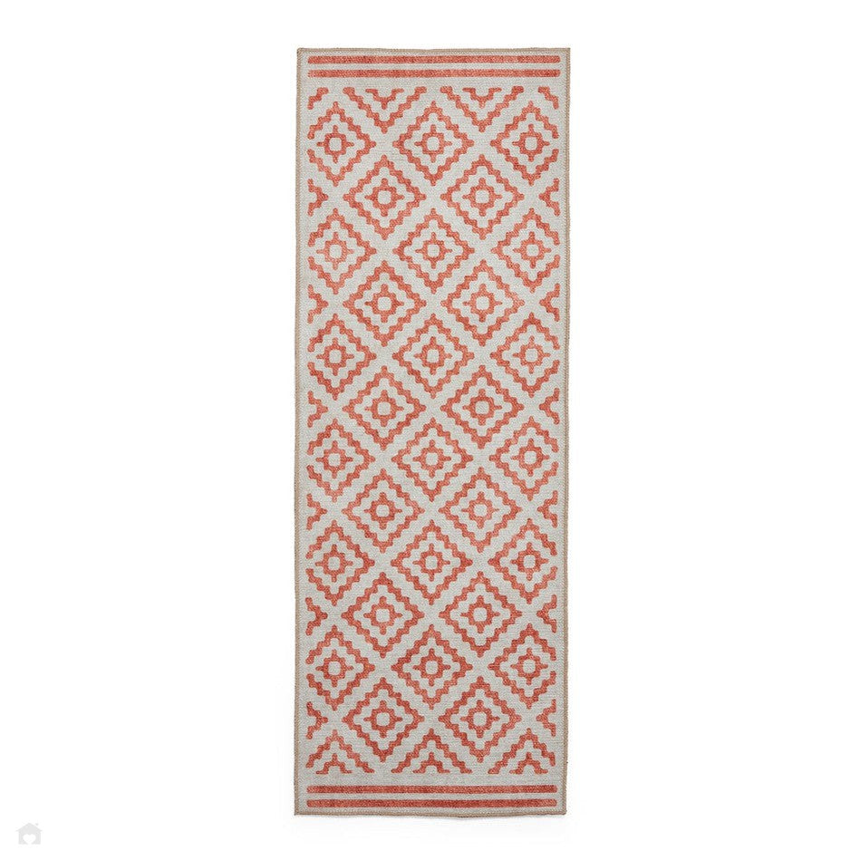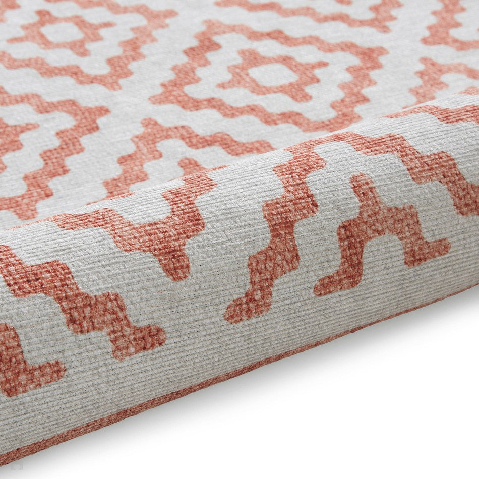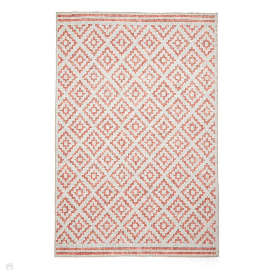 The Washable Coral H1058 Orange Rug delivers warmth and energy through its intricate geometric diamond design in Coral Orange, Peach, Beige, and Ivory. Its flatweave, low-profile construction ensures a smooth, practical surface, while digitally printed detailing adds fine texture and colour clarity. Made in Turkey from mixed recycled polyester, this lightweight and fully washable rug perfectly combines style and functionality. With its 0.2cm slim profile and soft distressed finish, it’s a versatile choice for bright, contemporary interiors, dining spaces, and open-plan living rooms.