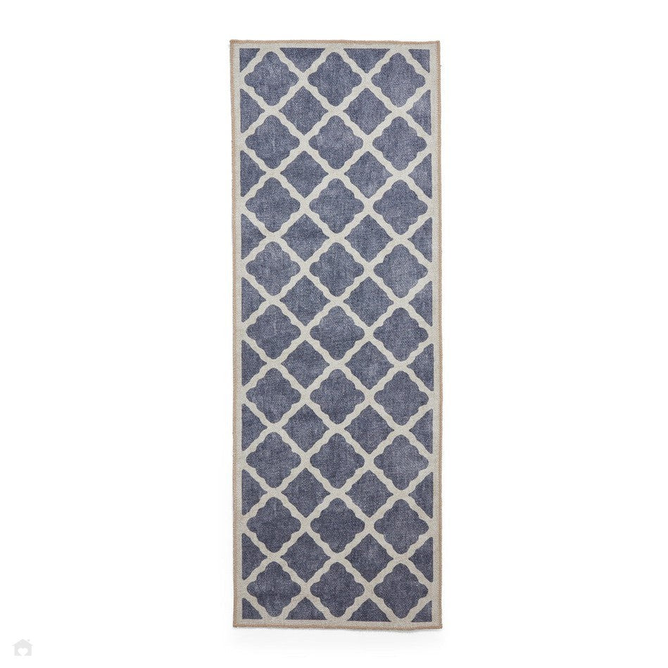 The Washable Coral H1063 Blue Rug showcases a modern geometric lattice design in a flatweave, low-profile pile, offering subtle texture and a sleek, contemporary finish. Crafted from lightweight, digitally printed polyester flatweave, it combines sharp visual detail with practical, easy-care functionality. Made in Turkey from mixed recycled polyester, this rug unites sustainable materials with vibrant digital printing and a smooth woven texture. With its 0.2cm slim profile, it sits neatly under furniture and is perfectly suited to busy, modern living spaces. The digitally printed design features a subtle distressed texture, adding gentle tonal variation and depth for a softly worn, modern look.