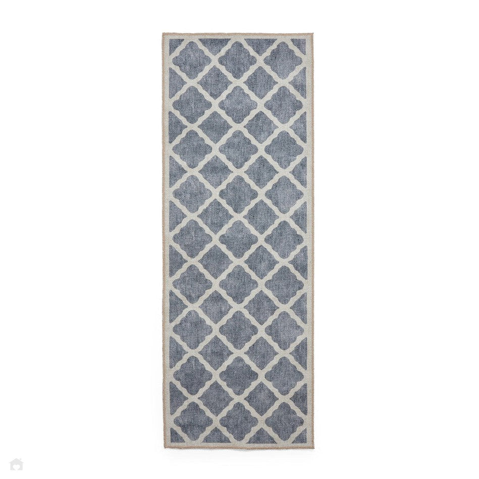 The Washable Coral H1063 Grey Rug brings a calm, modern aesthetic to any space, defined by a geometric lattice pattern in Steel Grey-Blue, Slate Grey, Light Grey, and Ivory. Its flatweave, low-profile construction provides a smooth surface and subtle texture, complemented by digitally printed detailing that enhances tonal definition. Made in Turkey from mixed recycled polyester, this lightweight and fully washable rug combines style, sustainability, and practicality, ideal for kitchens, living rooms, and contemporary interiors. With its 0.2cm slim profile, it offers easy maintenance and a refined, understated finish that complements neutral or cool-toned décor schemes.