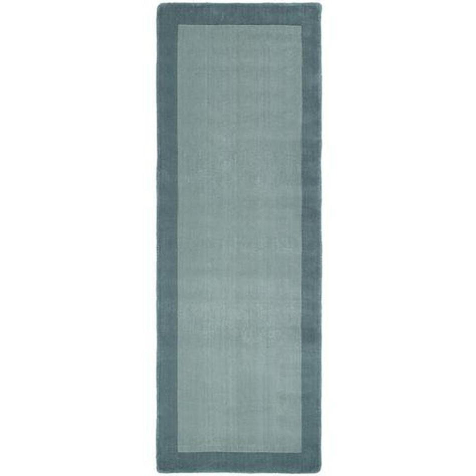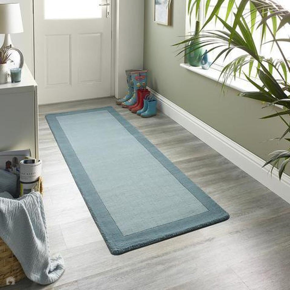 Borders Modern Plain Contrast Border Hand-Woven Wool Duck Egg Blue/Teal Blue Rug. Bring understated elegance to your space with the Borders Duck Egg Rug, the perfect way to add both style and comfort to your home. Expertly hand loom woven from 100% pure wool, this rug is durable, long-lasting, and has a luxuriously soft texture underfoot. The simple two-tone contrast border design makes it a versatile choice, ideal for adding subtle sophistication to living rooms, bedrooms, or dining spaces.