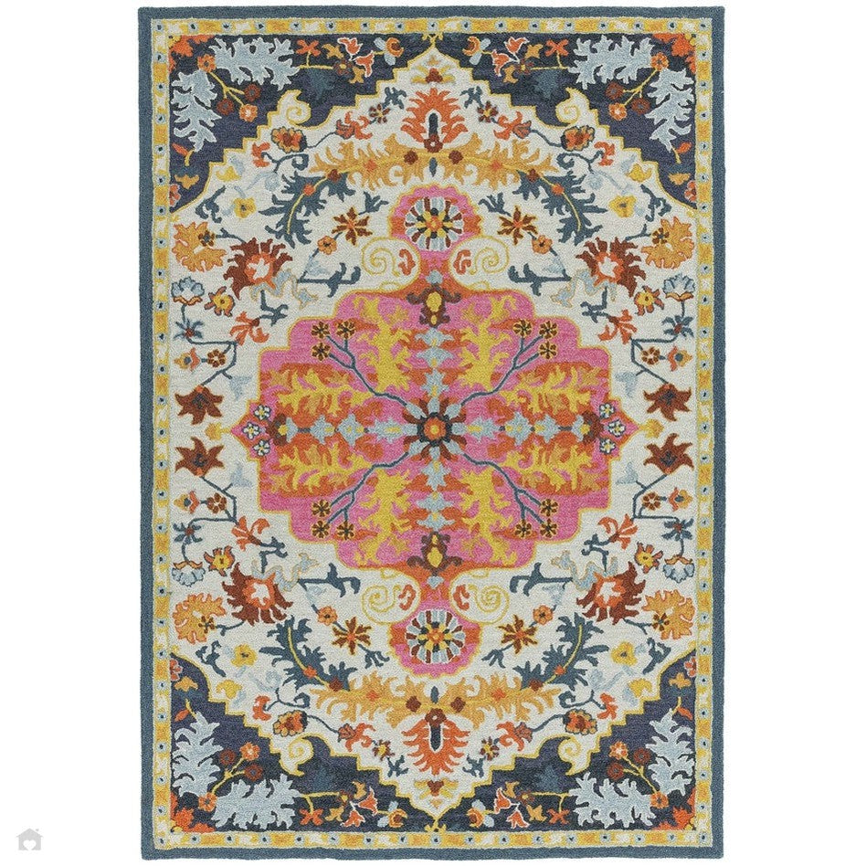 - Fuchsia Pink – Prominent in the central medallion, adding a bold and energetic focal point.