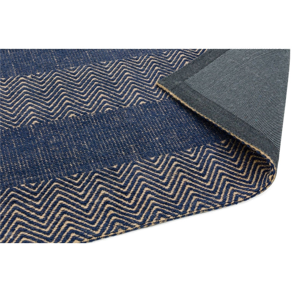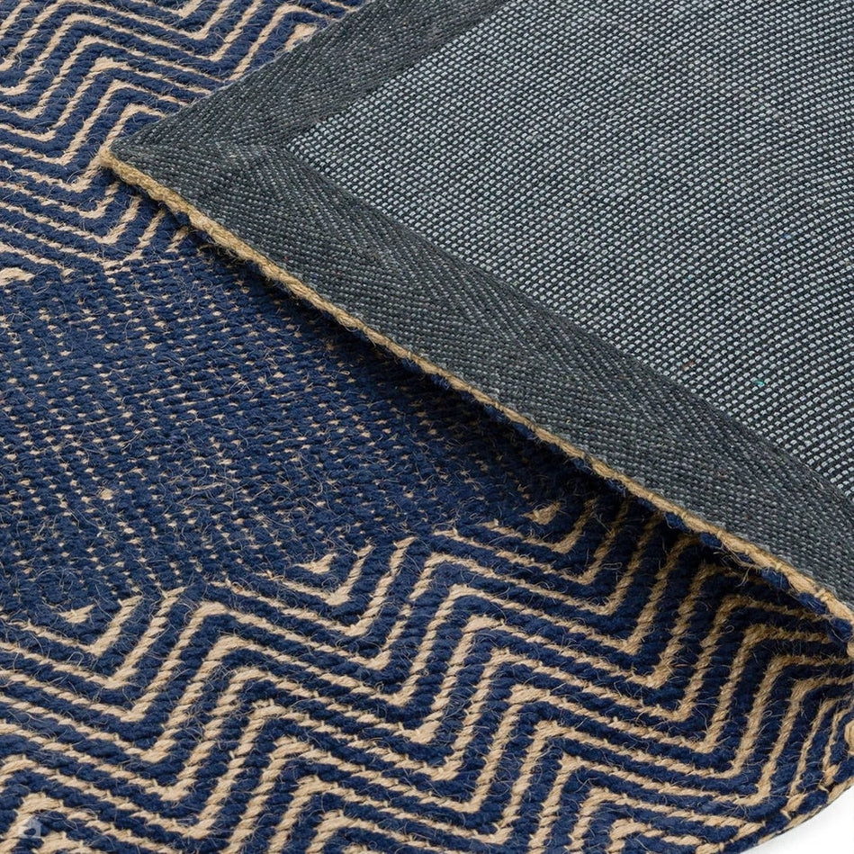 Natural Jute Beige – Interwoven through the chevron pattern, balancing the bold blue with earthy warmth and organic texture.