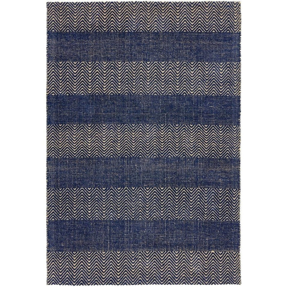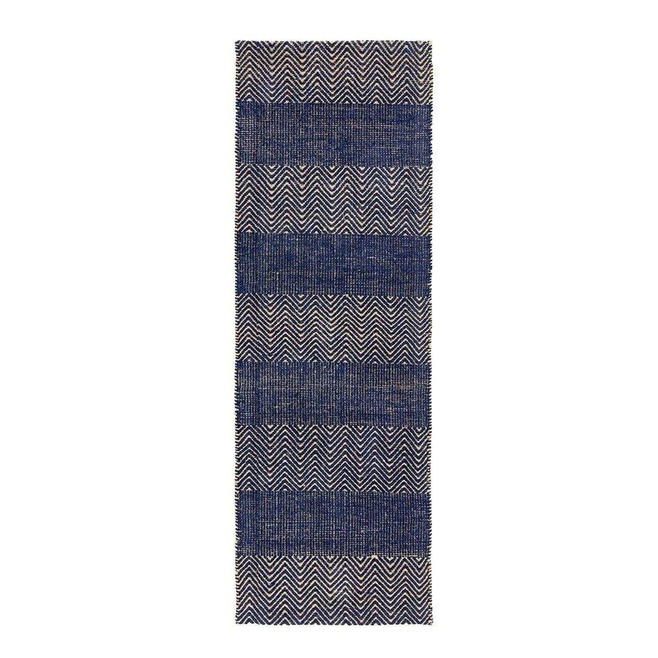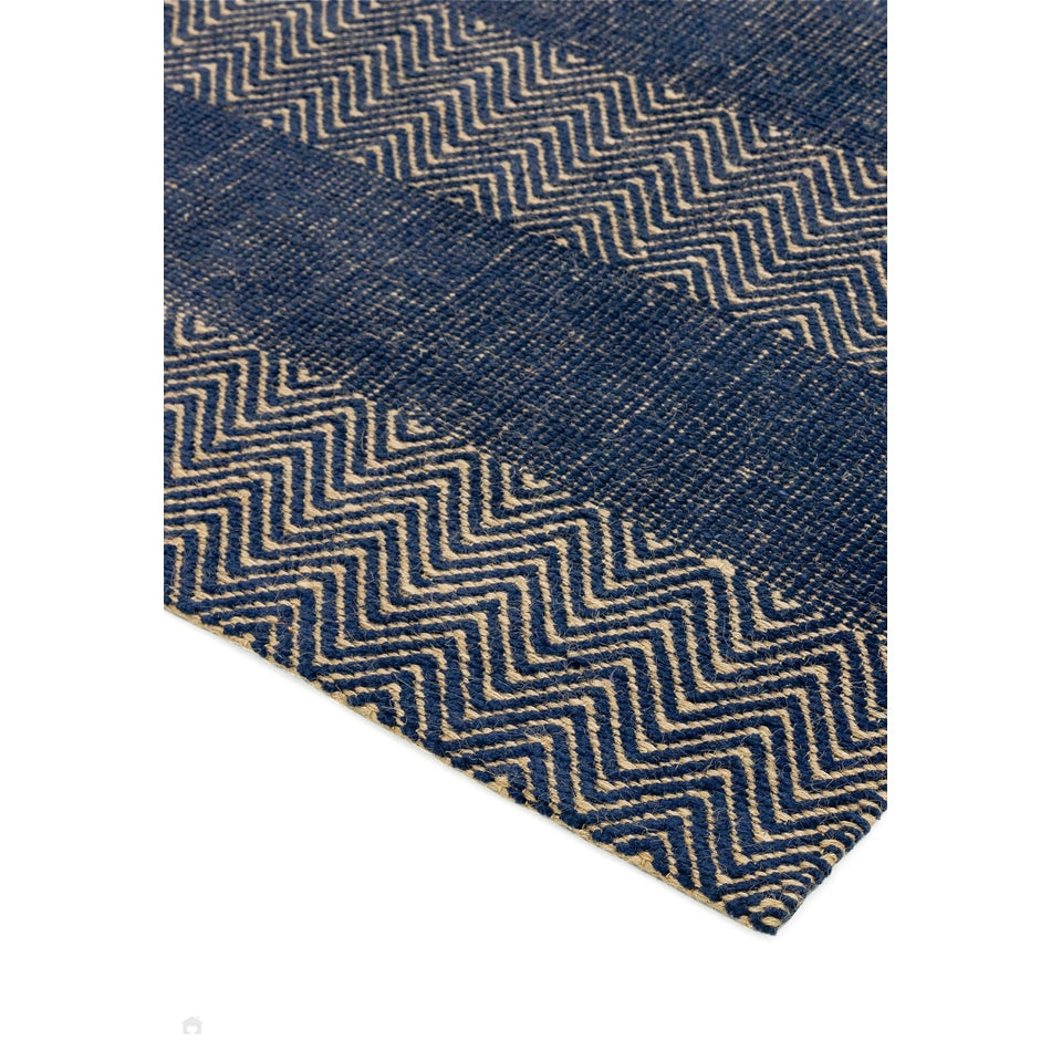 The Ives Modern Chevron Stripe Navy/Beige Rug combines artisanal craftsmanship with bold modern design, creating a sophisticated statement piece for any home. Hand-woven in India from a durable blend of 60% cotton chenille and 40% jute, this flatweave rug showcases alternating stripes of chevron and textured linear bands. The mix of natural jute fibres and soft cotton chenille creates a beautifully tactile surface, while the deep navy tone adds rich contrast and a sense of modern elegance to living spaces, dining rooms, or hallways.